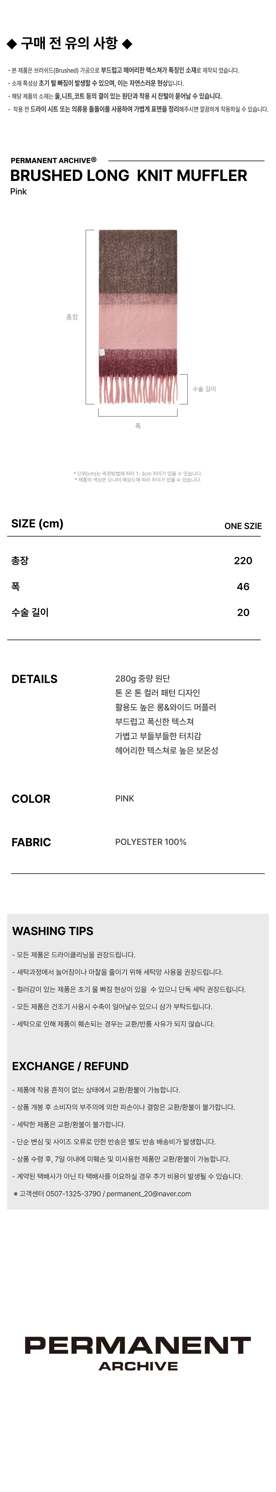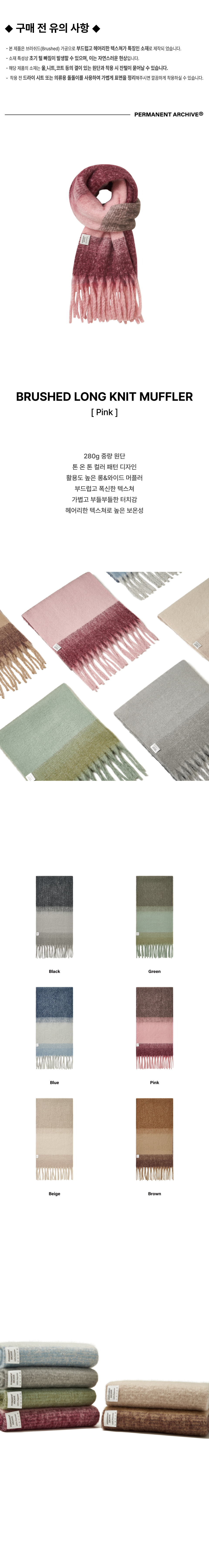 퍼머넌트 아카이브 브러쉬드 롱 니트 머플러 핑크