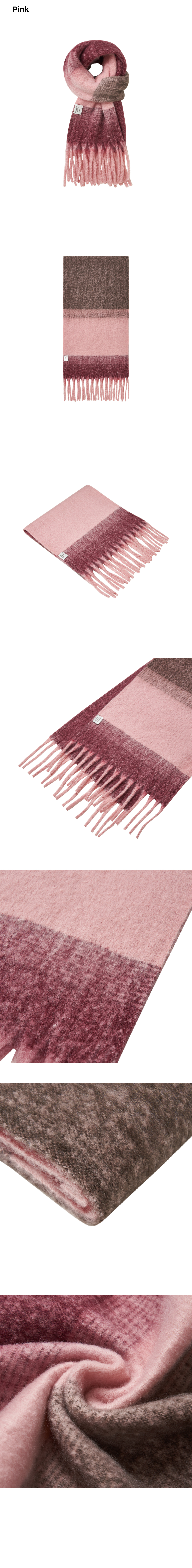 280g 중량 원단 톤 온 톤 컬러 패턴 디자인 활용도 높은 롱&와이드 머플러 부드럽고 폭신한 텍스쳐 가볍고 부들부들한 터치감 헤어리한 텍스쳐로 높은 보온성
