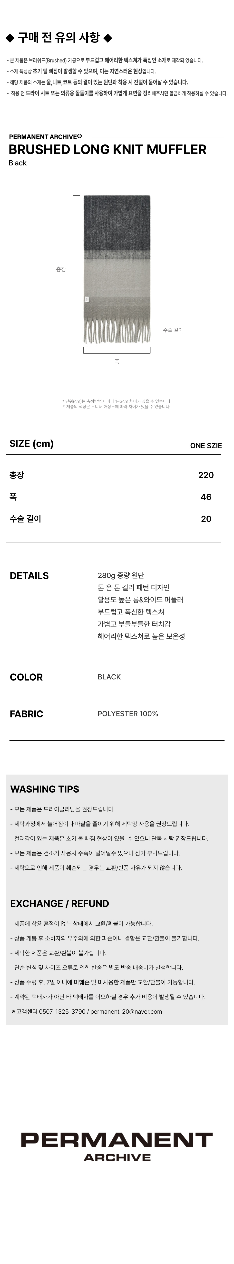 퍼머넌트 아카이브 브러쉬드 롱 니트 머플러 블랙