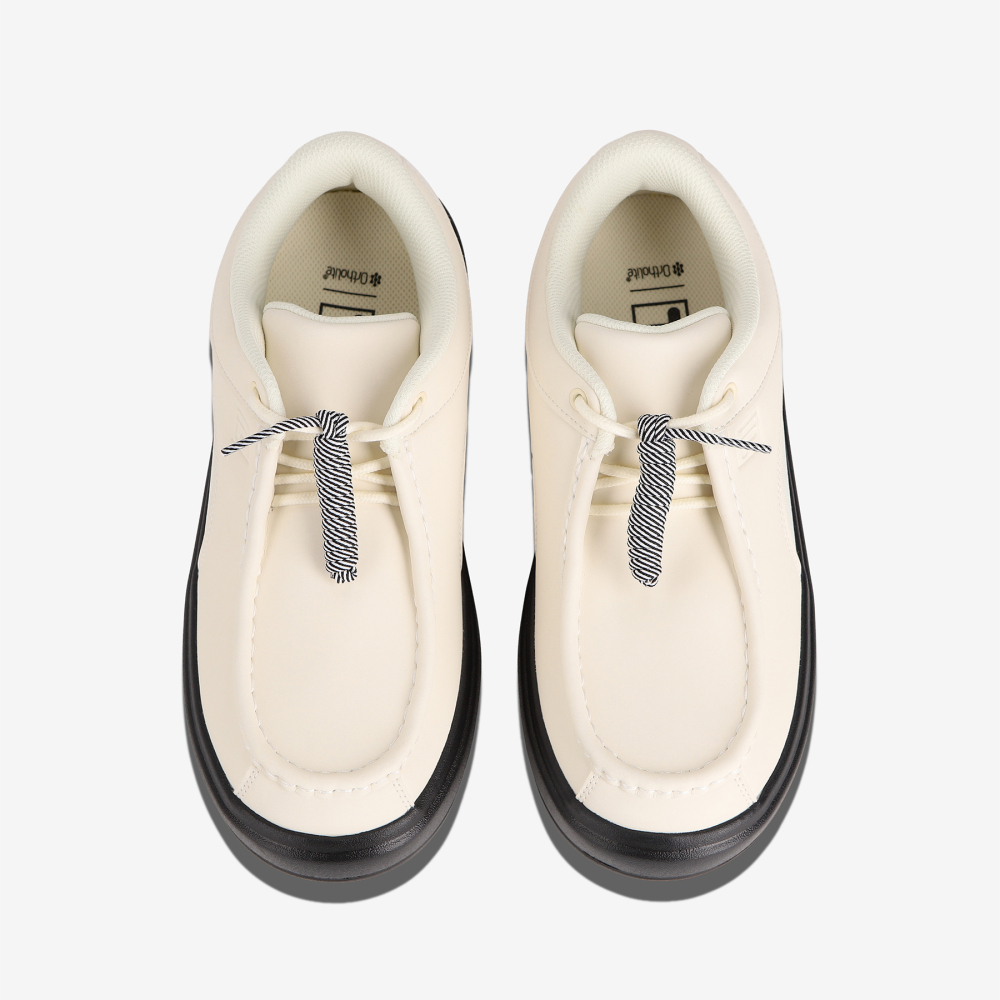 둥근 실루엣이 돋보이는 룰즈의 모카신 레더 버전입니다.높은 플랫폼 구조로 자연스러운 키높이 효과를 제공하며, IP 소재 아웃솔을 적용해 가볍고 편안한 착화감을 구현했습니다.말려 있는 보조 신끈 디테일로 다양한 스타일링 연출이 가능하며, 오솔라이트 인솔을 사용해 우수한 항균·통기성을 제공합니다.모카신 쉐입 특성상 다소 작게 느껴질 수 있어 발이 민감하신 고객님께는 한 사이즈 크게 선택하시는 것을 추천드립니다.* 여분의 신발끈이 함께 제공됩니다.