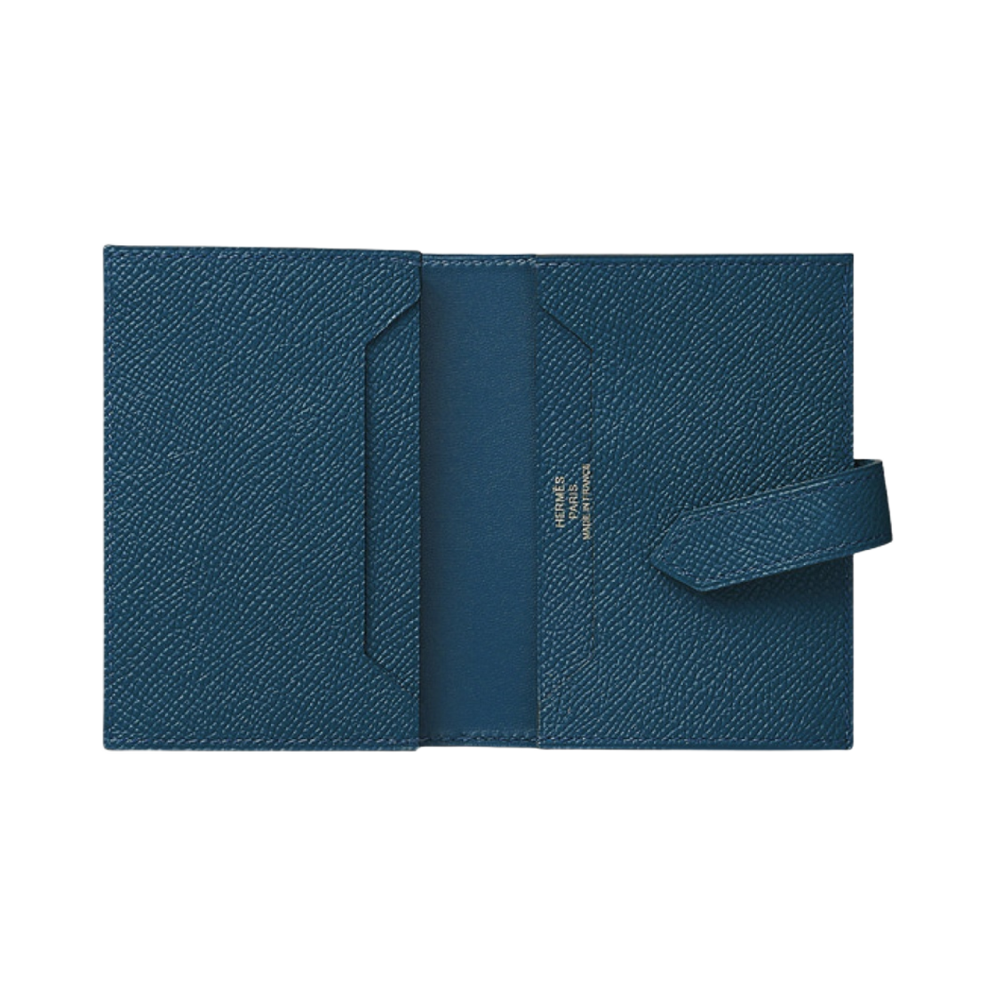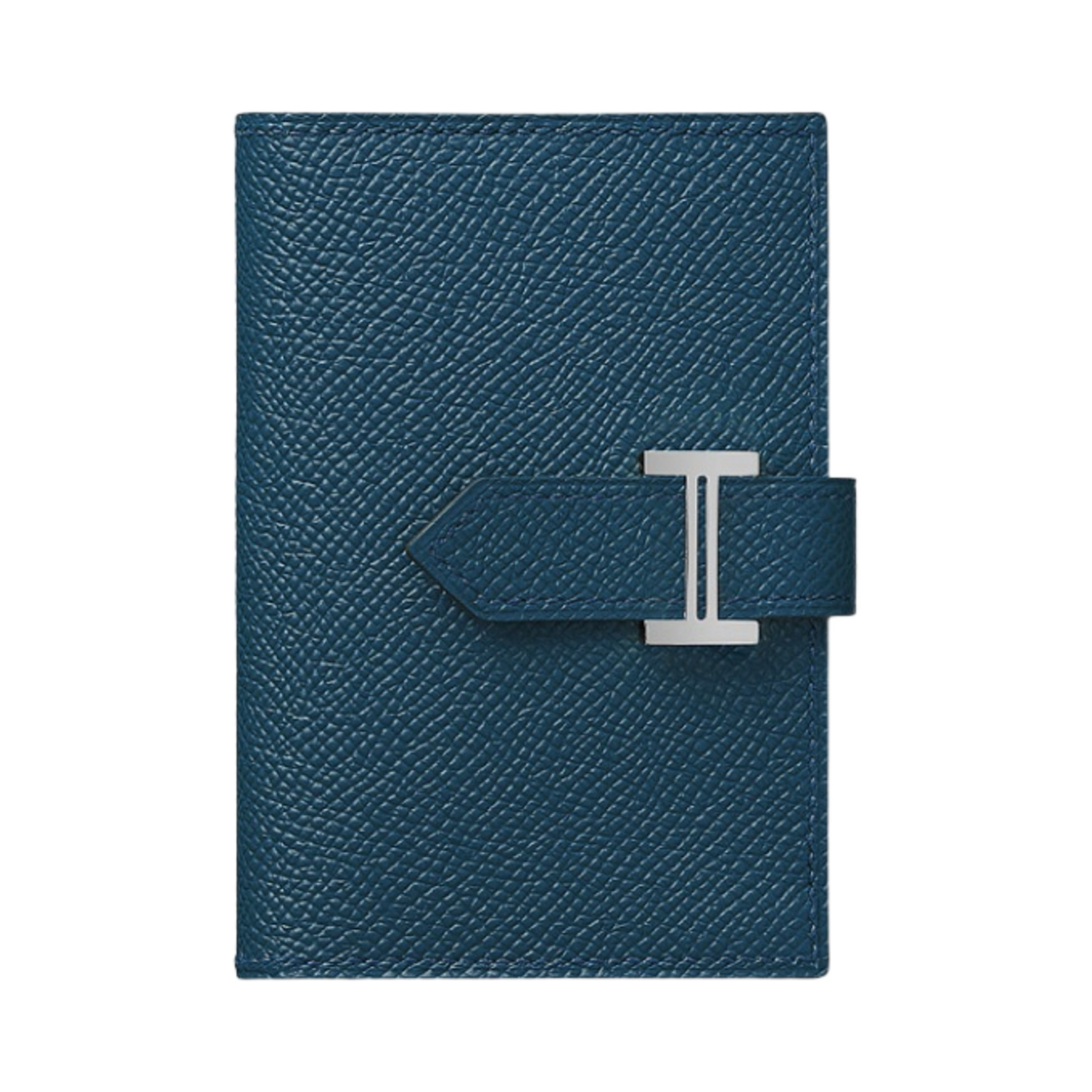 Hermes Bearn Card Holder Epsom & Palladium Deep Bleu