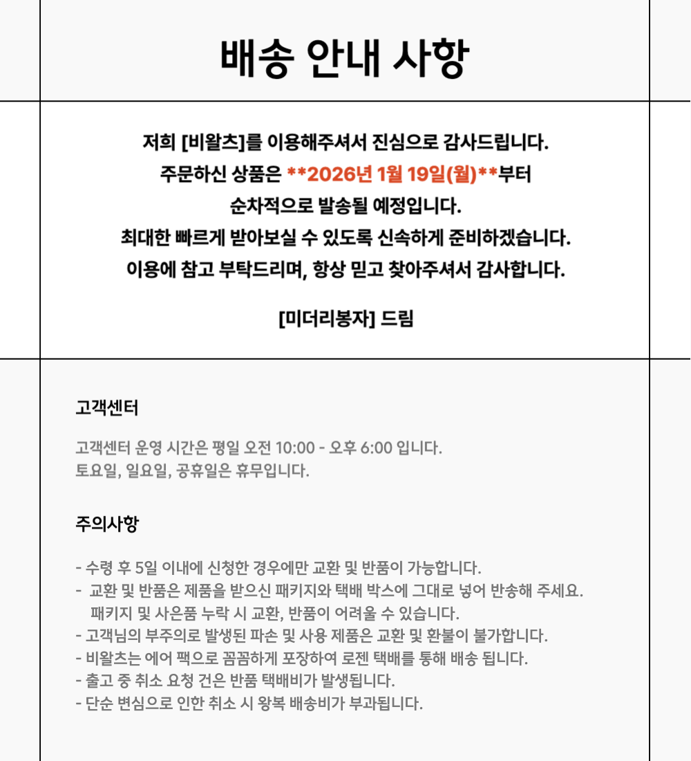 브랜드배송 3,500원 결제 후 2일 내 출고 예정 ・ 5만원 이상 구매 시 배송비 무료