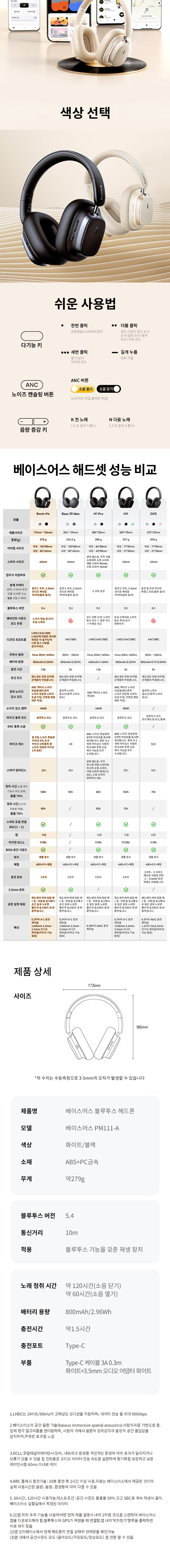 베이스어스 헤드폰 무선 5.4 블루투스 헤드셋 노이즈캔슬링 H1s