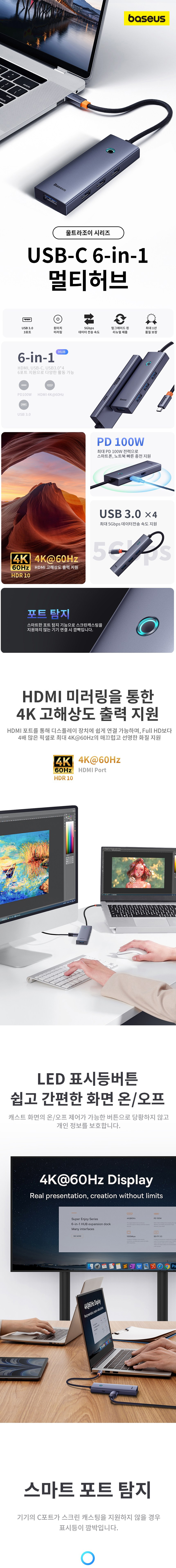 베이스어스 USB 허브 C타입 멀티 포트 HDMI 울트라조이 시리즈 6 in 1