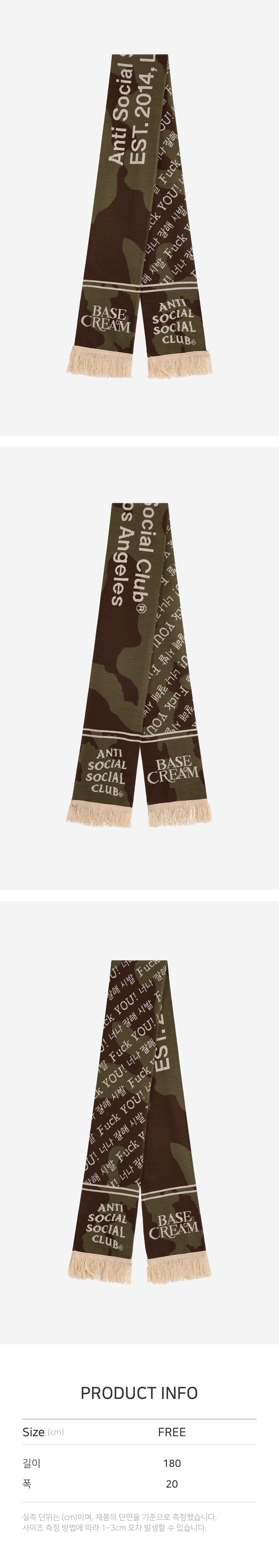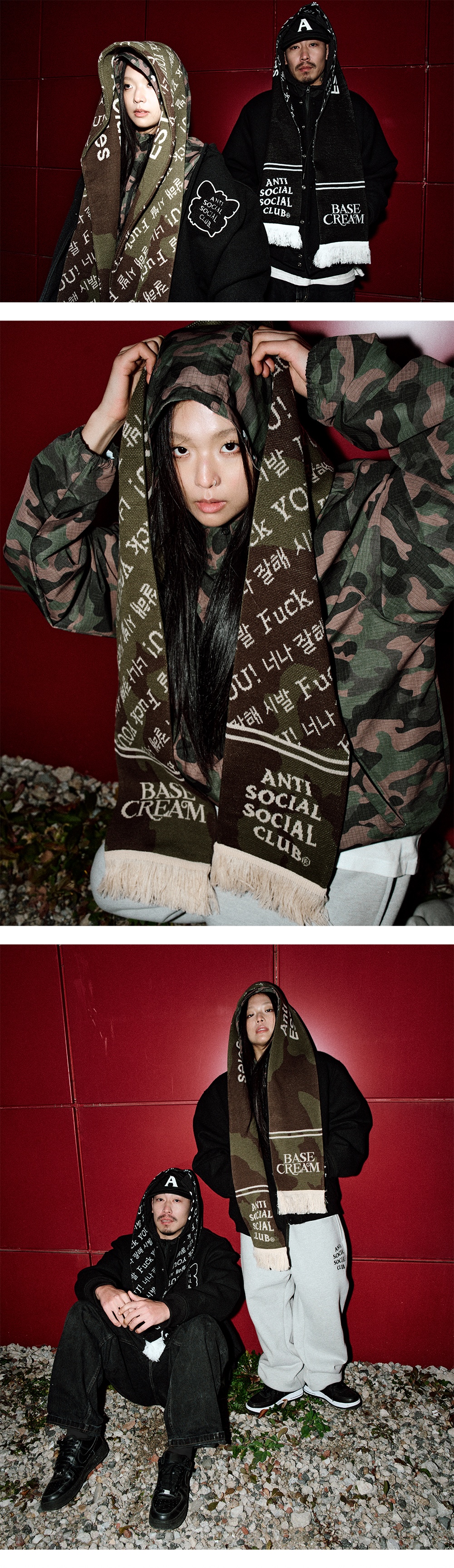 BASECREAM 겨울 시즌을 상징하는 ‘너나잘해시발’ 머플러가 ANTISOCIALSOCIALCLUB과 만나 새롭게 재해석되었습니다. 두 브랜드의 아이덴티티를 조화롭게 담아 카모, 블랙 총 2가지 컬러로 출시되며, 한쪽 면에는 ASSC 특유의 헤리티지 그래픽을, 반대 면에는 BASECREAM의 ‘너잘시’ 패턴을 더해 강렬한 대비를 완성했습니다. 이번 시즌 머플러는 총 길이 약 180cm로 제작되어 이전보다 확실히 여유로운 기장감을 제공합니다. 덕분에 착용 시 다양한 스타일링이 가능하며, 보온성과 연출력 모두 한층 강화되었습니다.