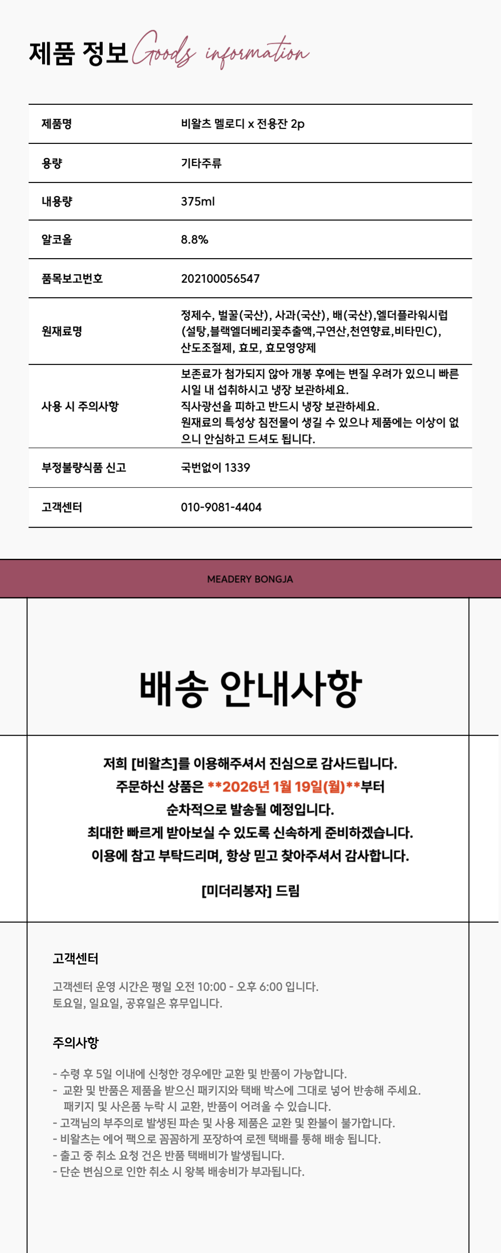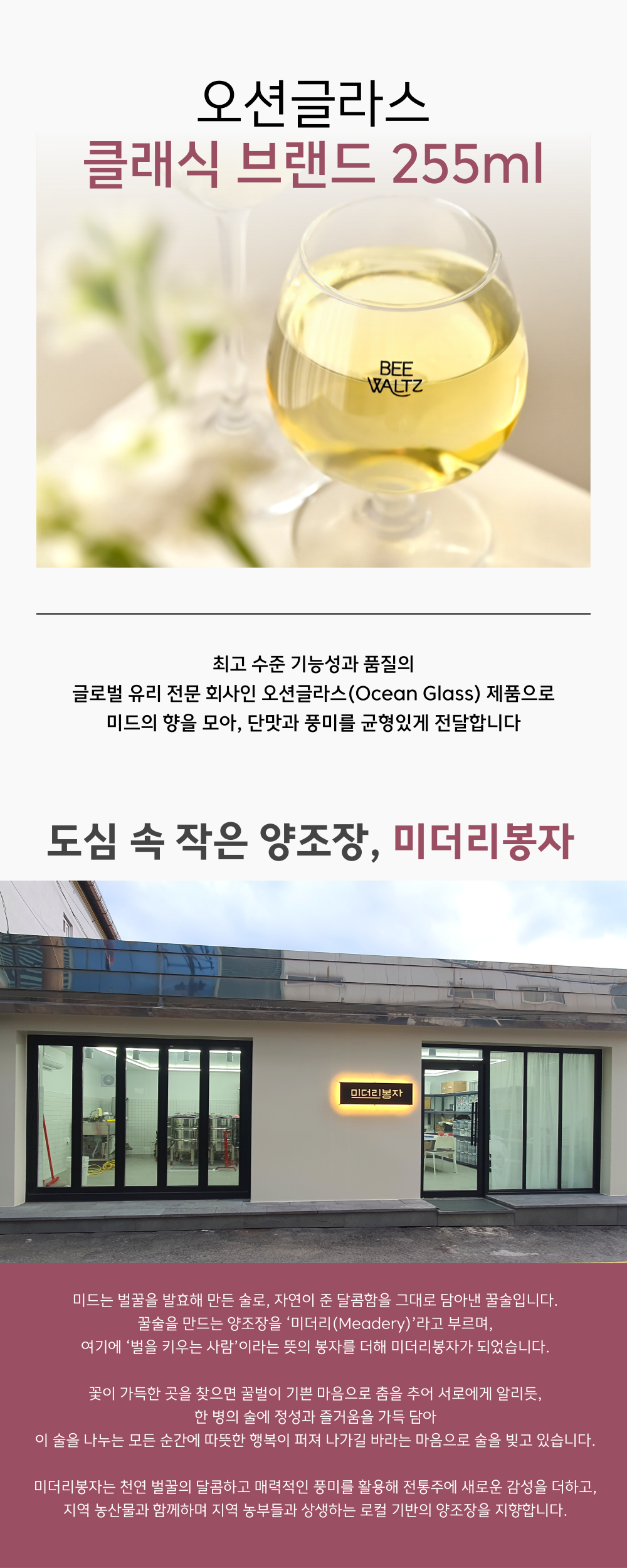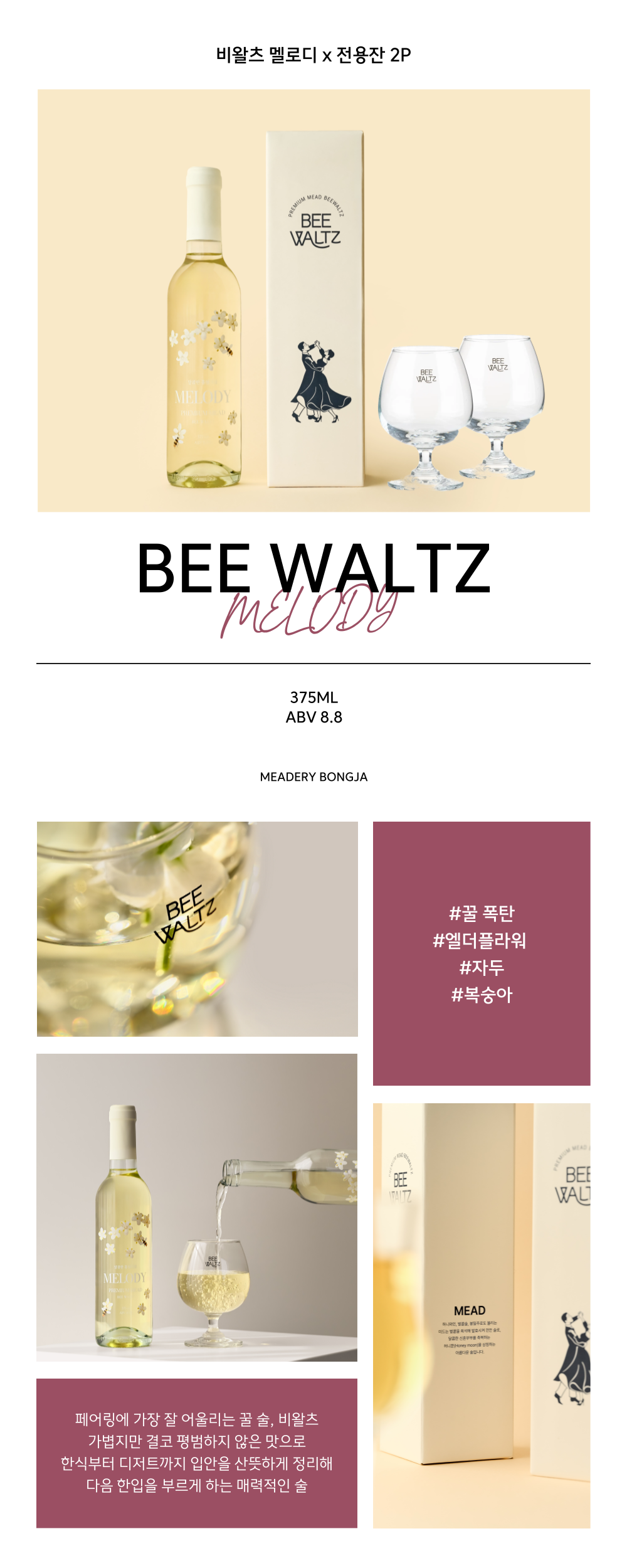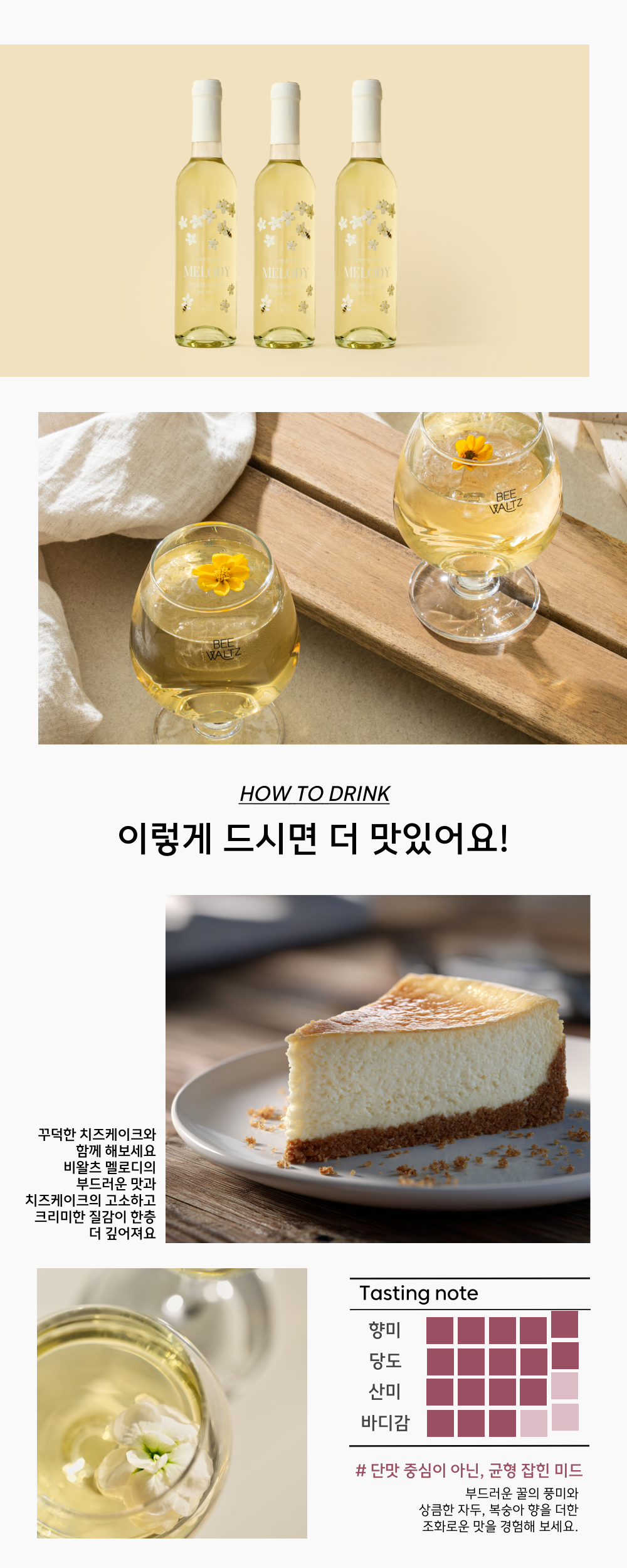 비왈츠 멜로디는 천연 벌꿀을 발효해 만든 미드로, 가볍고 산뜻하지만 결코 평범하지 않은 풍미를 지닌 꿀술로 부드러운 단맛과 은은한 과일·꽃 향이 조화롭게 어우러진 술입니다. 자극 없이 편안하게 즐길 수 있어, 일상의 여유로운 순간에 잘 어울립니다.