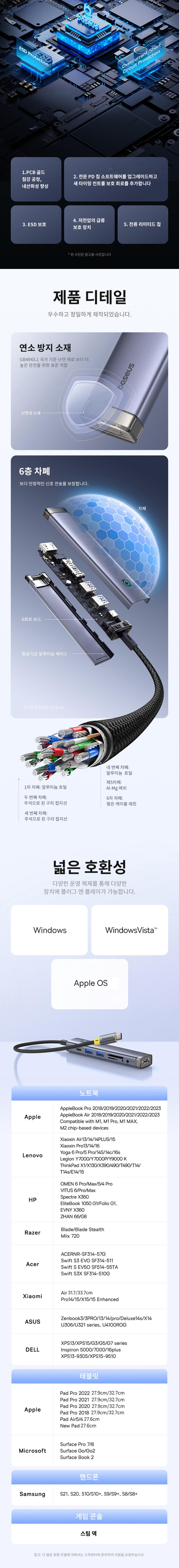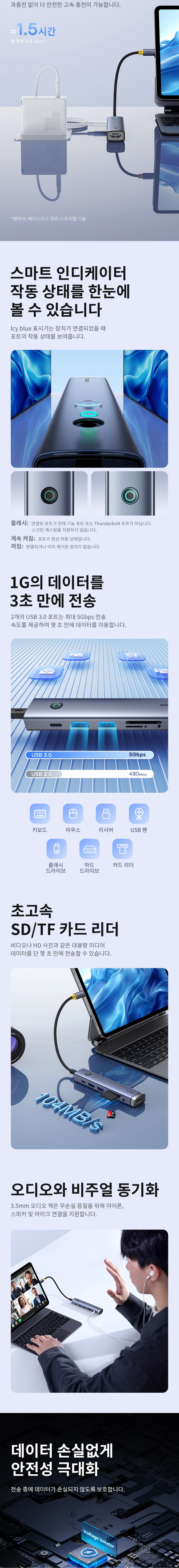 베이스어스 USB 허브 멀티 노트북 C타입 포트 PD 100W 울트라조이 AIR 7in1