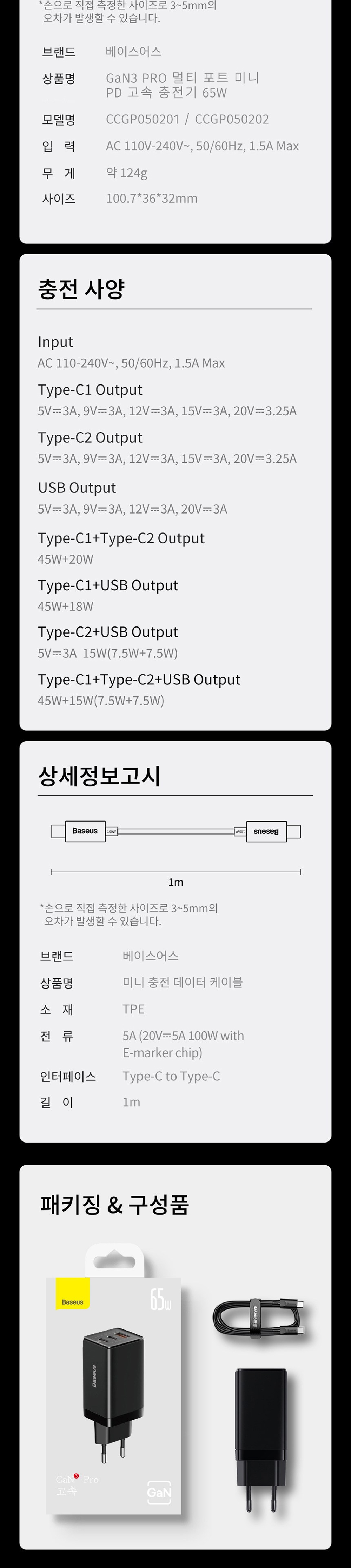 베이스어스 고속 충전기 어댑터 초고속 멀티 포트 65W 노트북 PD 충전 GaN3 PRO