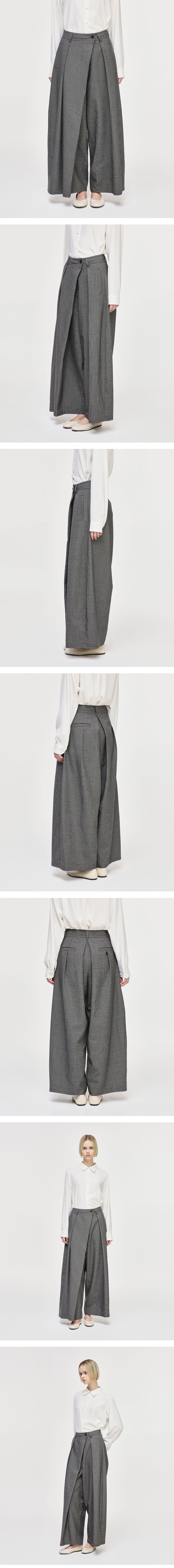 - SONGZIO COLLECTION 어시메트릭 랩 팬츠 - ITALY BONOTTO사의 소프트한 터치감의 울 패브릭 - 전면 어시매트릭 랩 디자인 - 전면,후면 시그니처 폴드 디테일 - 오리엔탈한 무드의 와이드 실루엣