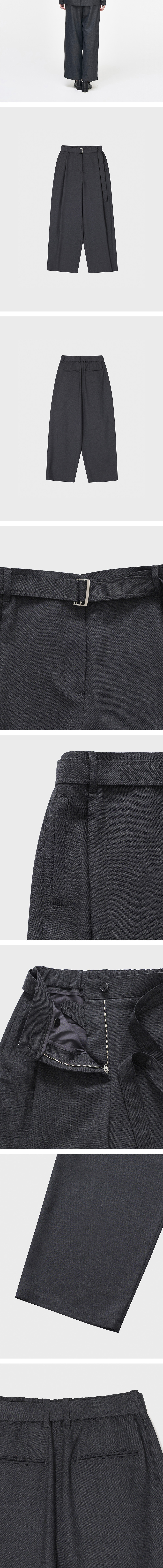 (W) 송지오 세미 와이드 벨티드 팬츠 차콜