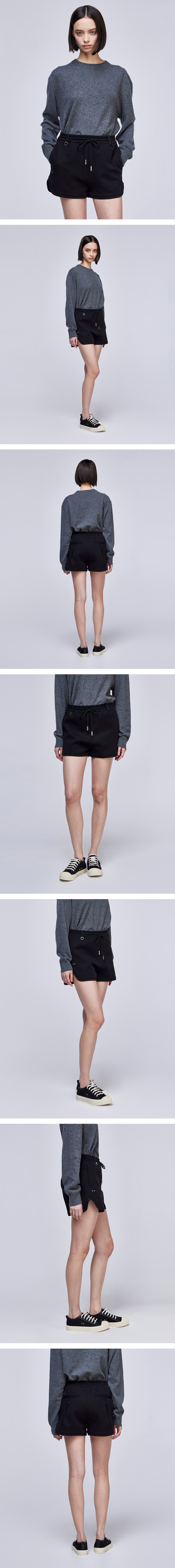 - 팬서 쇼츠 - 짧은 기장감의 돌핀 쇼츠 - 허리단에 이밴드와 스트링 내장으로 사이즈 조절가능 - 전면 벨트고리에 금속 팁 디테일 - 전면 '그레이 아이즈' 팬서 와펜 - 후면 포켓 아래 턱 디테일로 입체적인 실루엣 - 총 4개의 포켓 구성