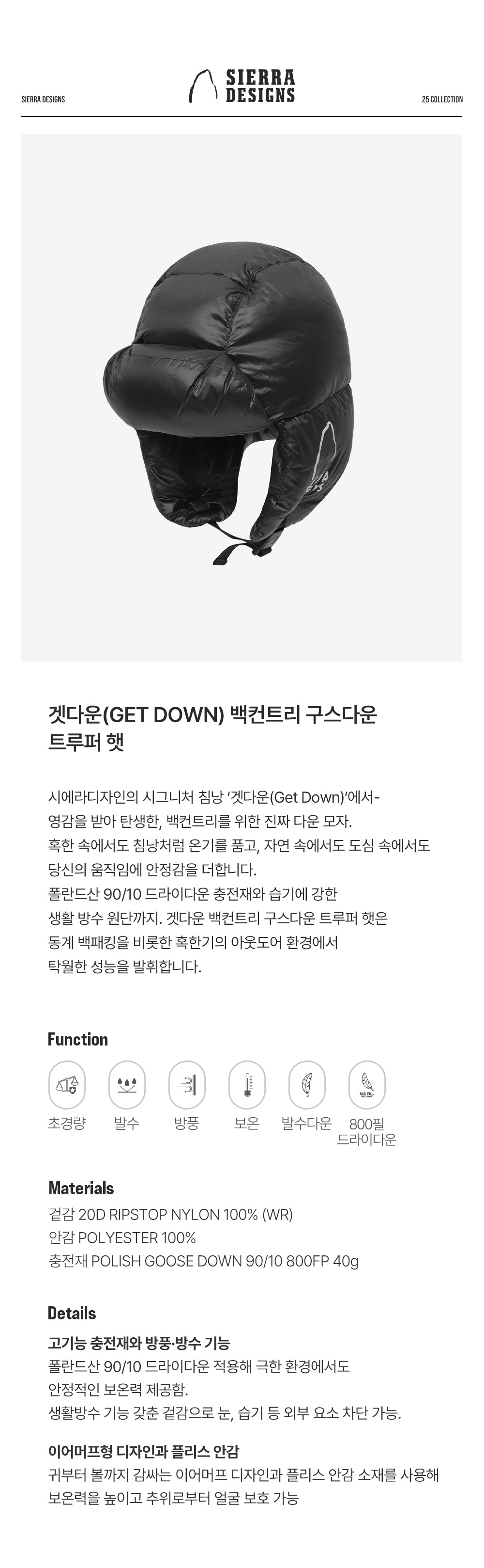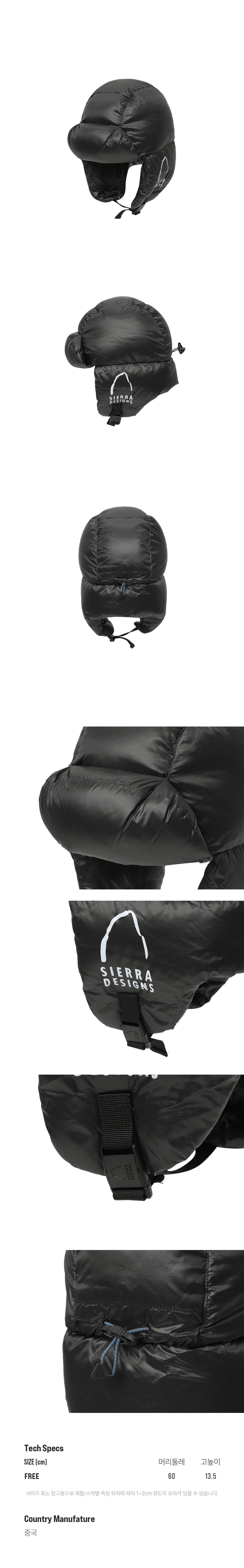 시에라디자인 겟다운 백컨트리 구스다운 트루퍼 햇 블랙