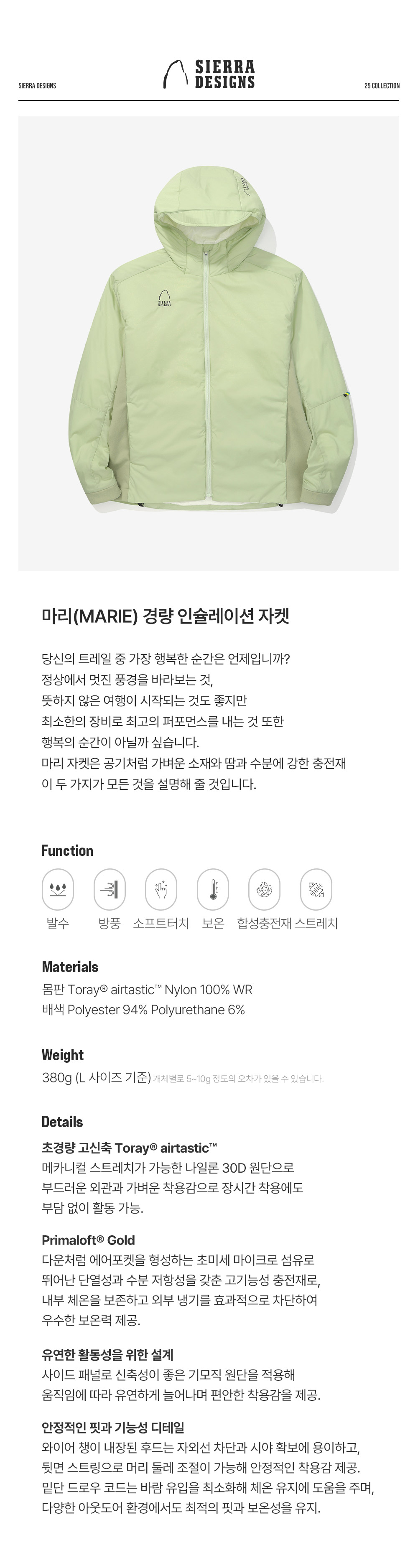 시에라디자인 마리 경량 인슐레이션 자켓 세이지 그린