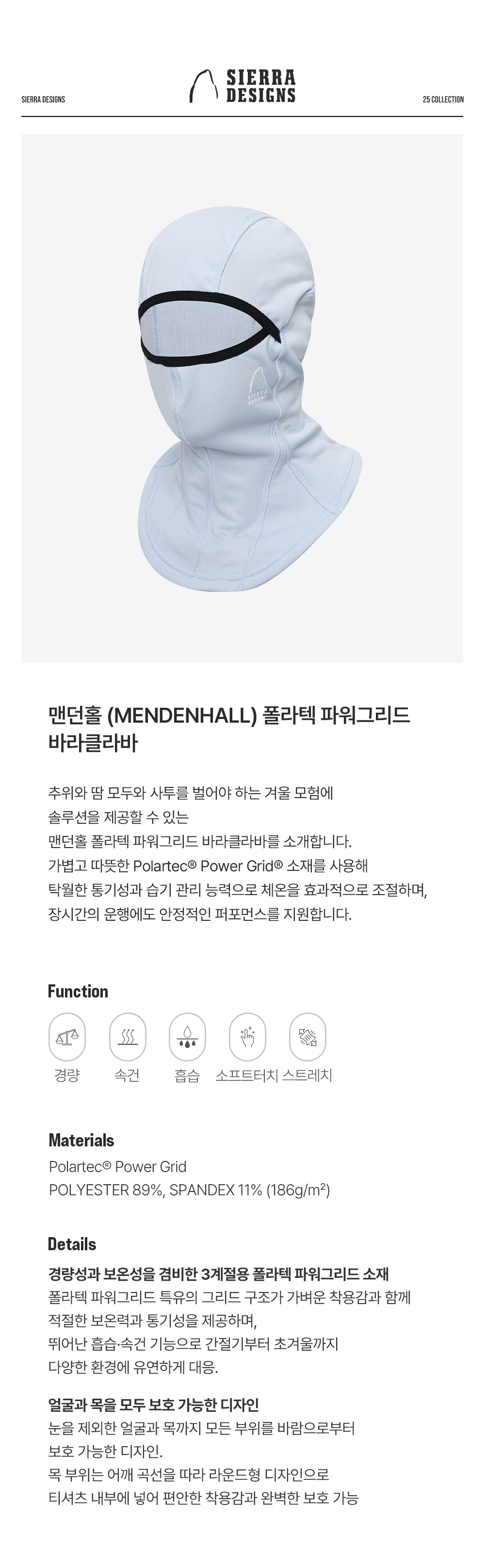 시에라디자인 맨던홀 폴라텍 파워그리드 바라클라바 라이트 스카이블루