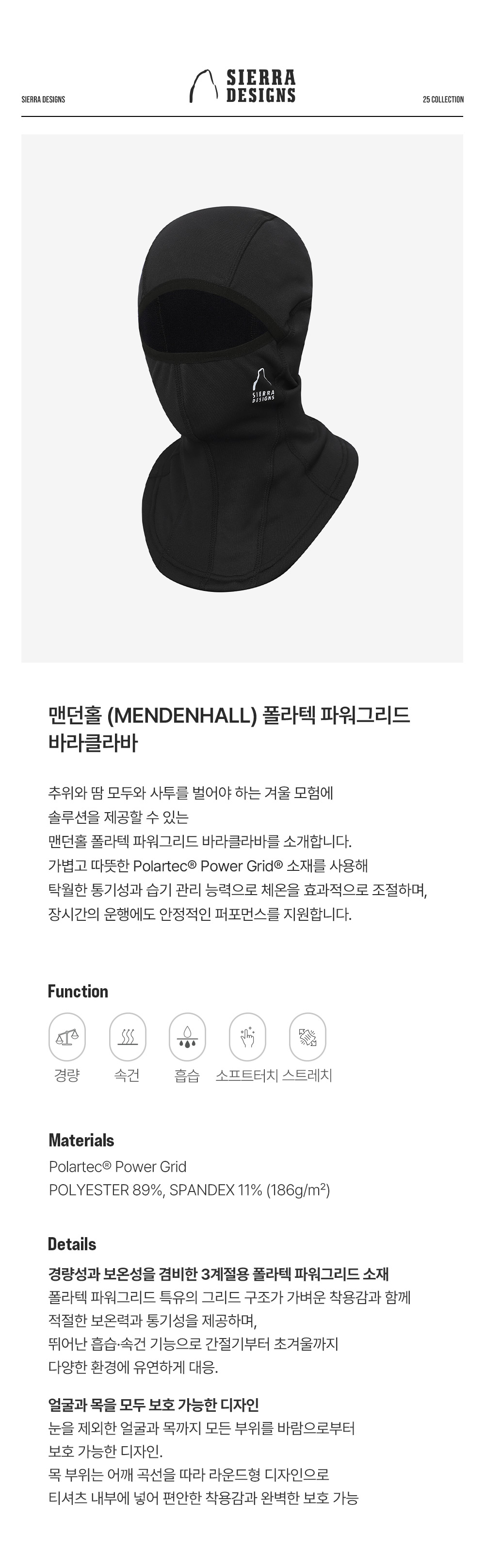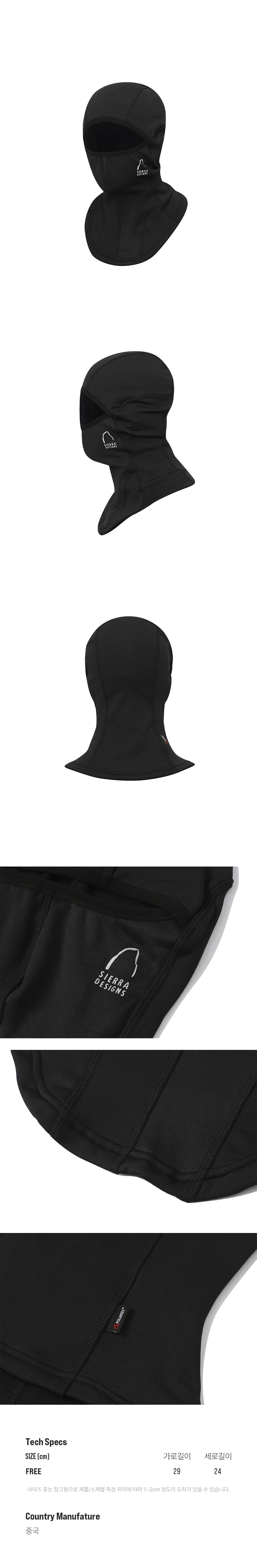 시에라디자인 맨던홀 폴라텍 파워그리드 바라클라바 블랙