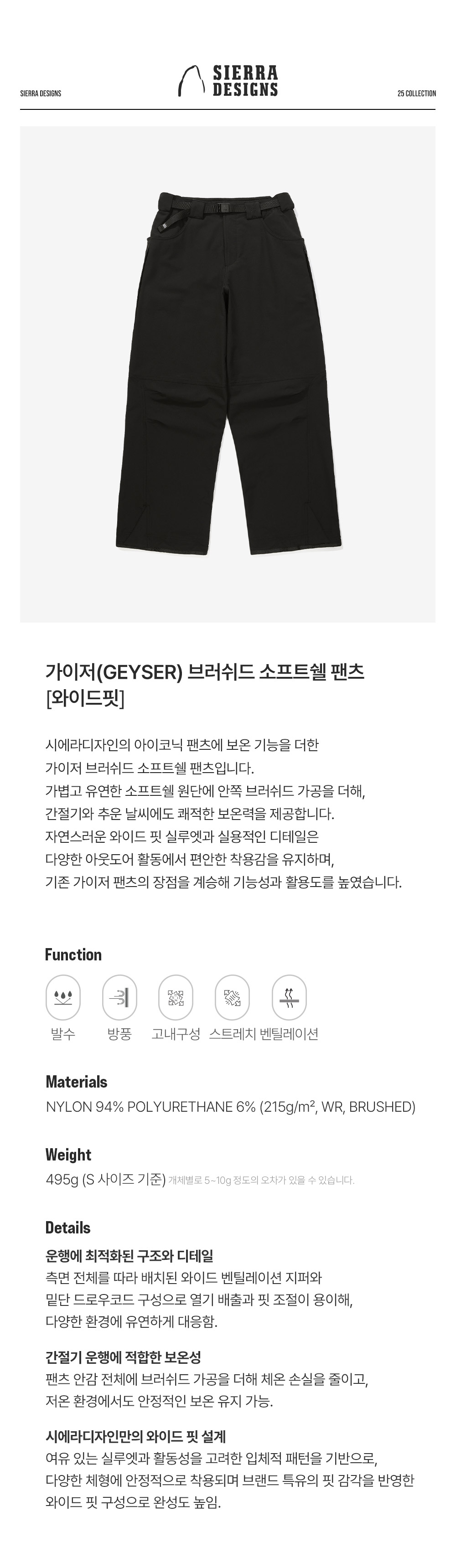 시에라디자인 W 가이저 브러쉬드 소프트쉘 팬츠 와이드핏 블랙