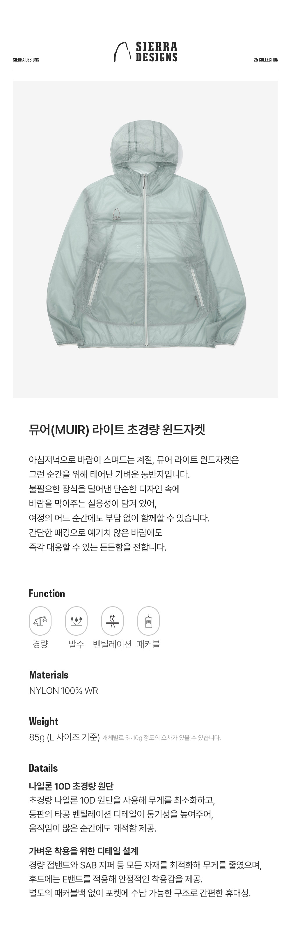 시에라디자인 뮤어 라이트 초경량 윈드자켓 라이트 그레이
