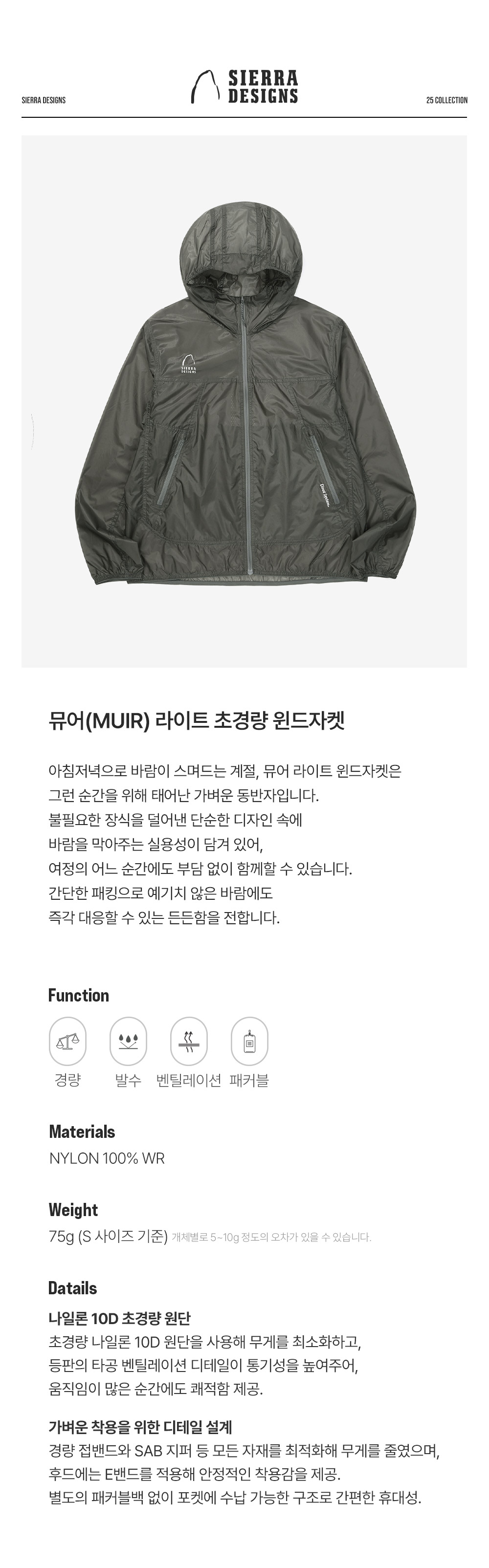시에라디자인 W 뮤어 라이트 초경량 윈드자켓 차콜