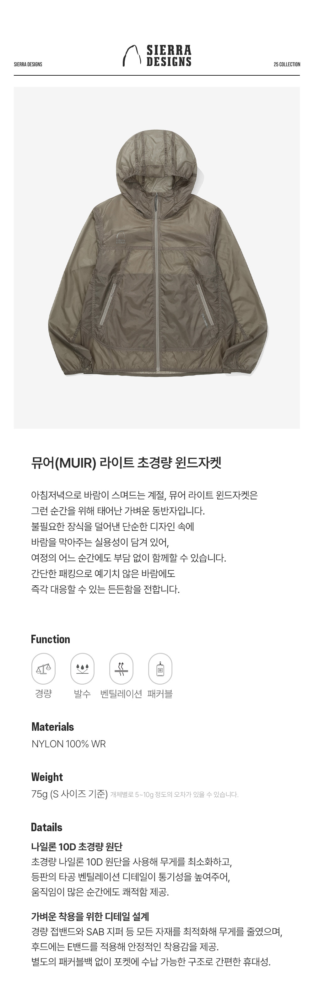 시에라디자인 W 뮤어 라이트 초경량 윈드자켓 브라운