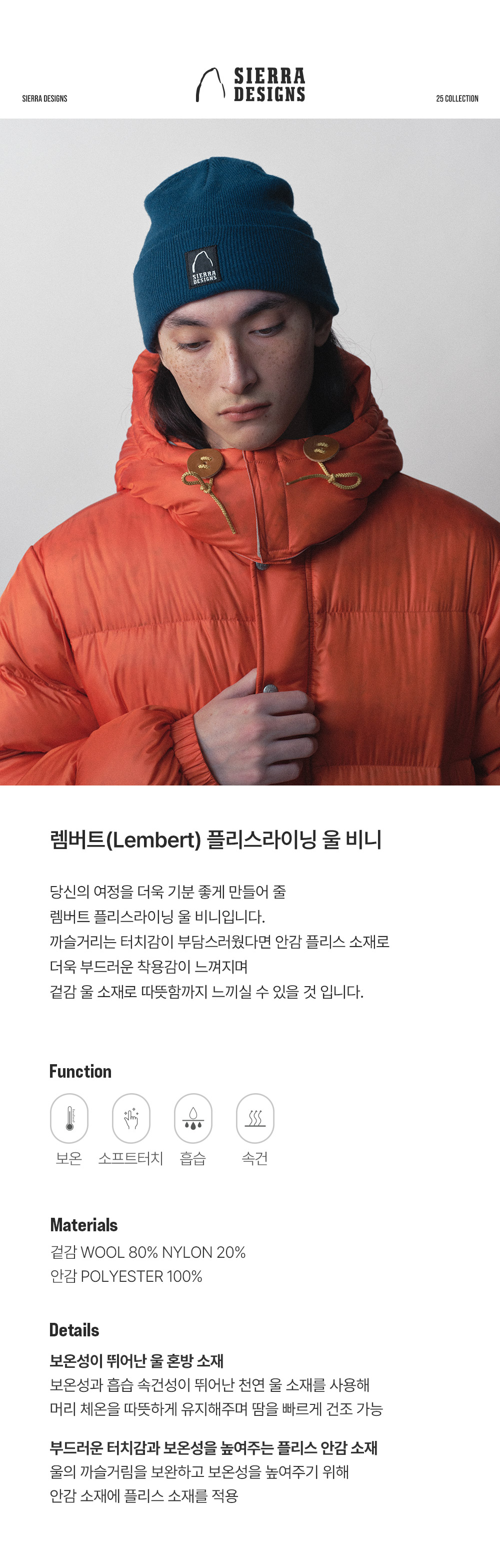 시에라디자인 렘버트 플리스라이닝 울 비니 블루
