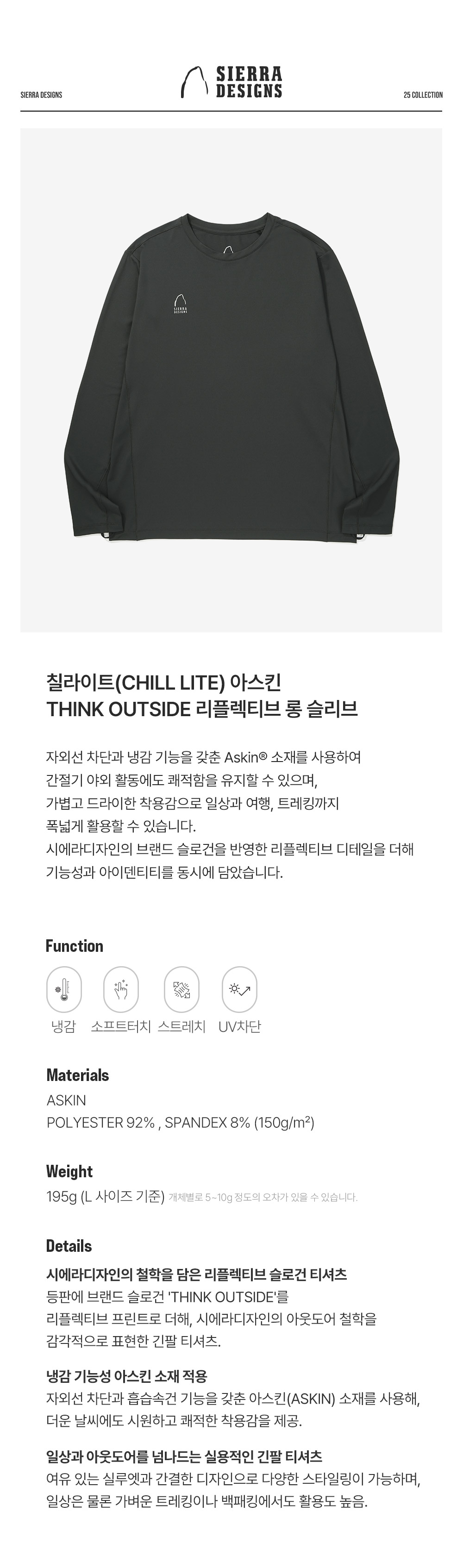 시에라디자인 칠라이트 아스킨 THINK OUTSIDE 리플렉티브 롱 슬리브 차콜