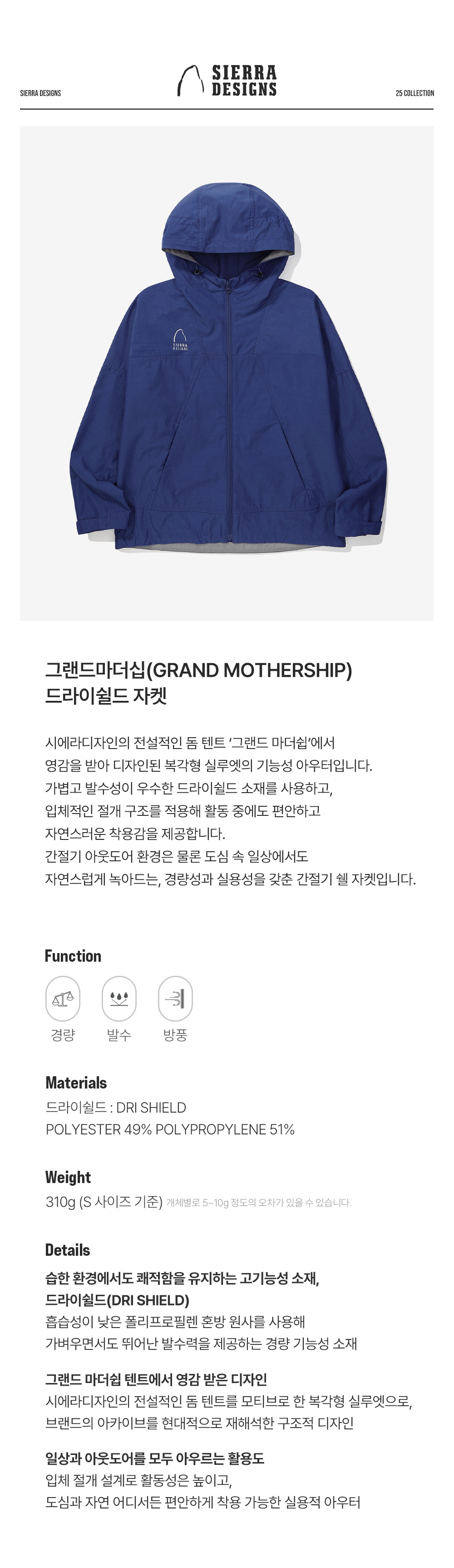 시에라디자인 W 그랜드마더십 드라이쉴드 자켓 블루