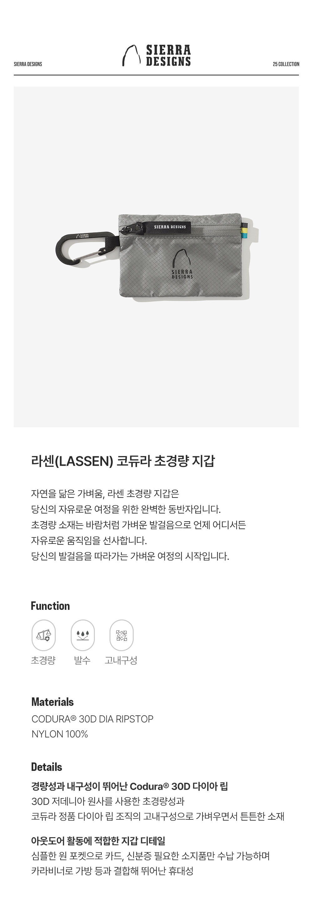 [6% 적립] 시에라디자인 라센 코듀라 초경량 지갑 그레이