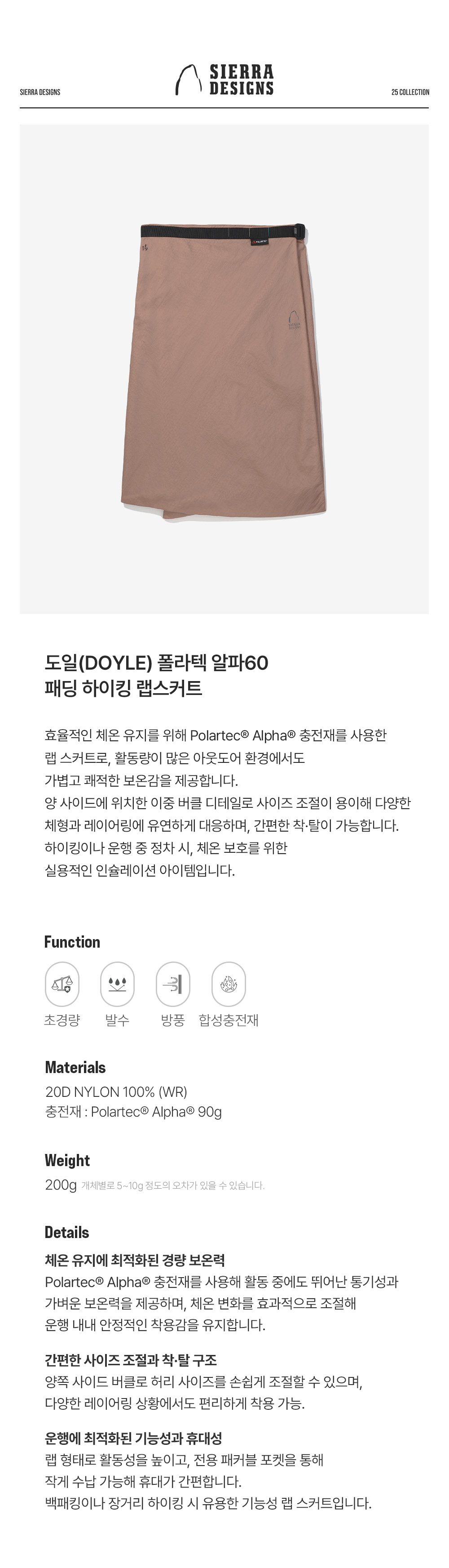시에라디자인 도일 폴라텍 알파60 패딩 하이킹 랩스커트 토프