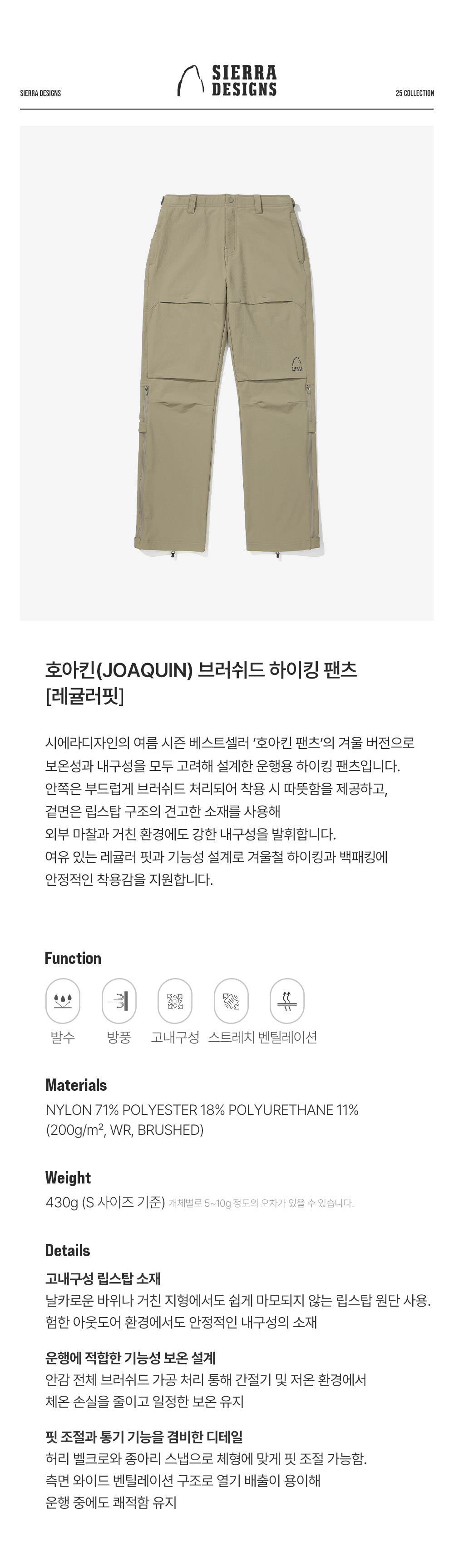 시에라디자인 W 호아킨 브러쉬드 하이킹 팬츠 레귤러핏 그레이시 베이지
