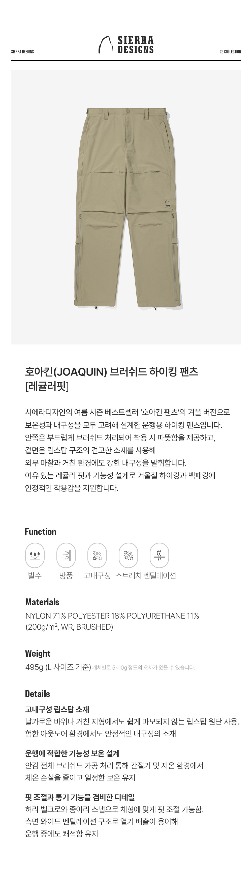 시에라디자인 호아킨 브러쉬드 하이킹 팬츠 레귤러핏 그레이시 베이지