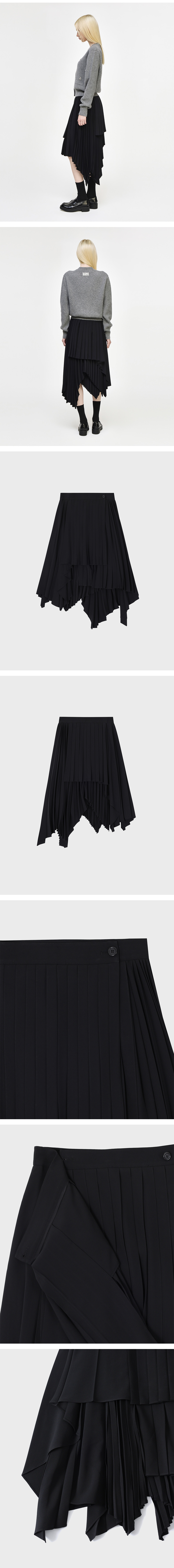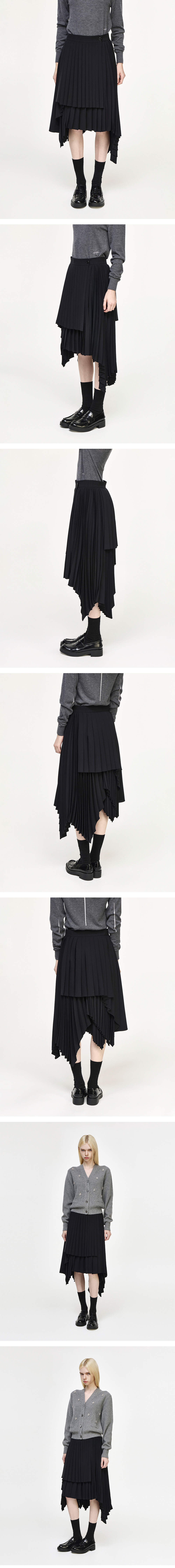 (W) 송지오 멀티 플리츠 레이어드 스커트 블랙