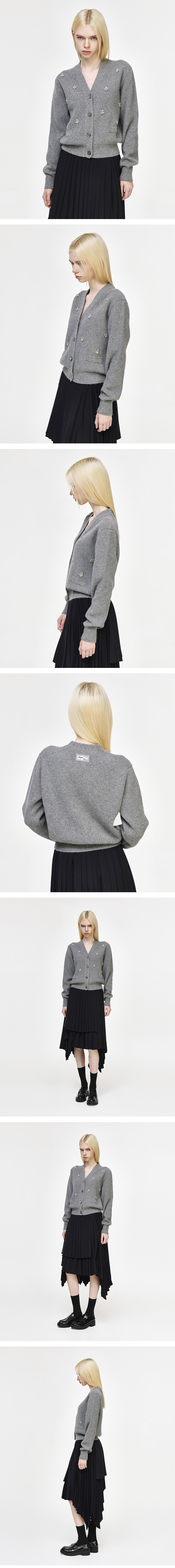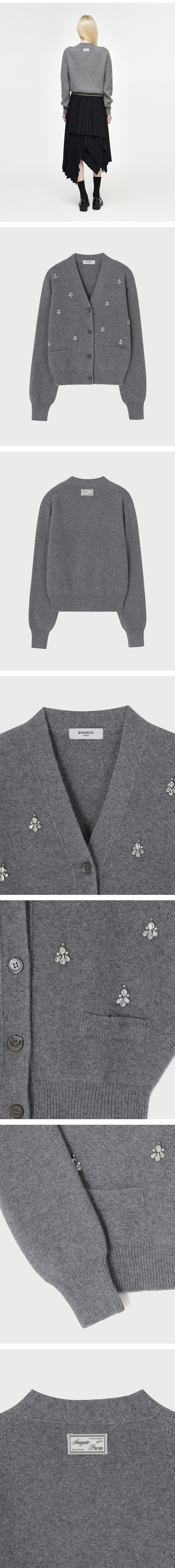(W) 송지오 쥬얼리 아플리케 딥컷 가디건 그레이