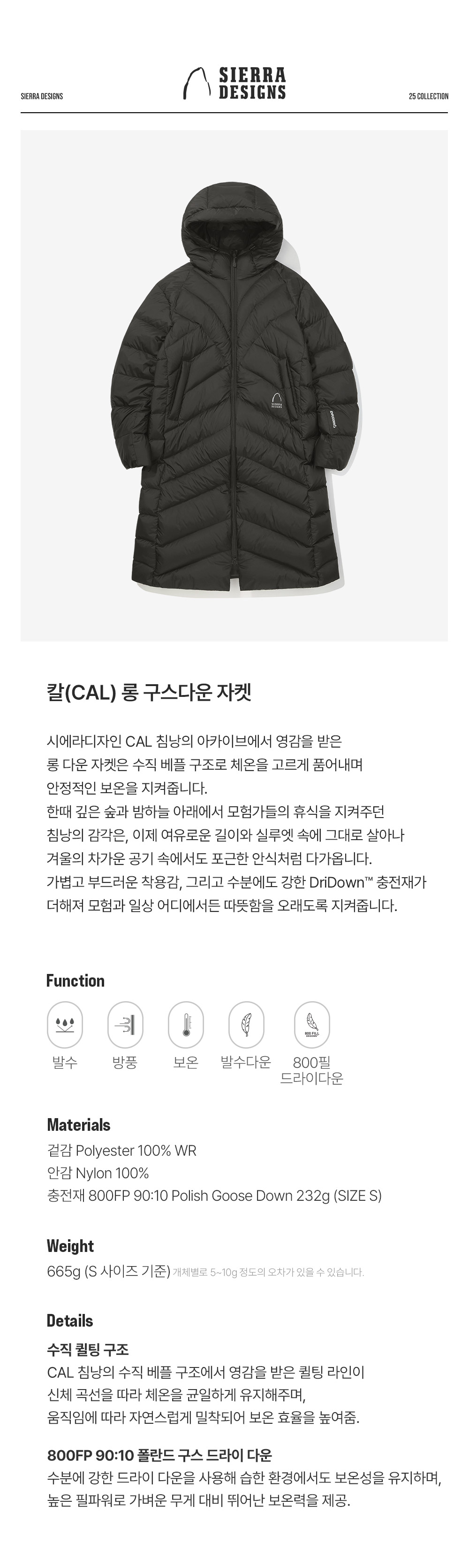 시에라디자인 W 칼 롱 구스다운 자켓 블랙