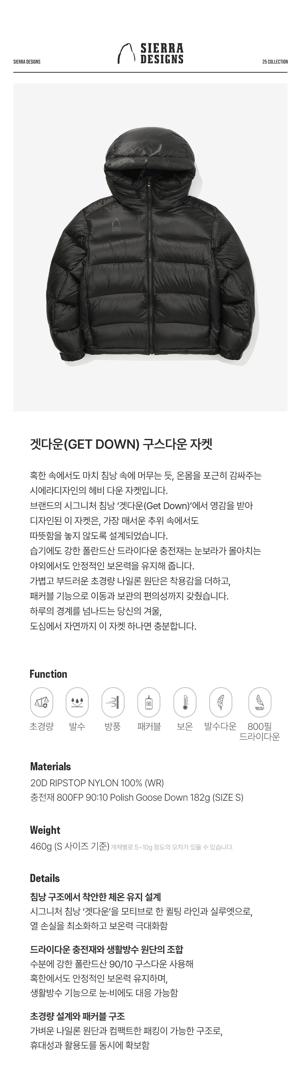 시에라디자인 W 겟다운 구스다운 자켓 블랙