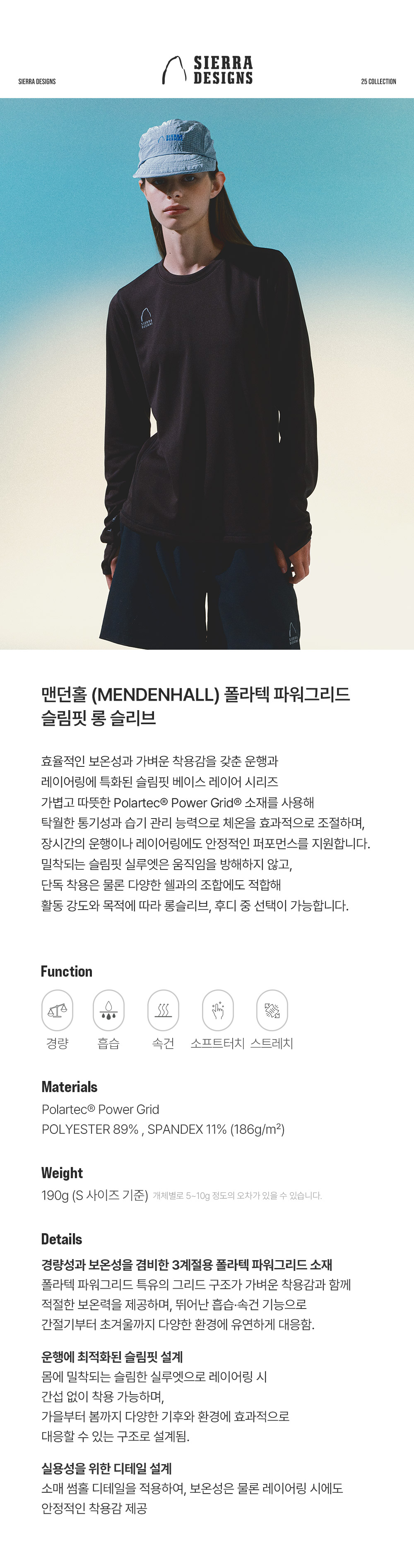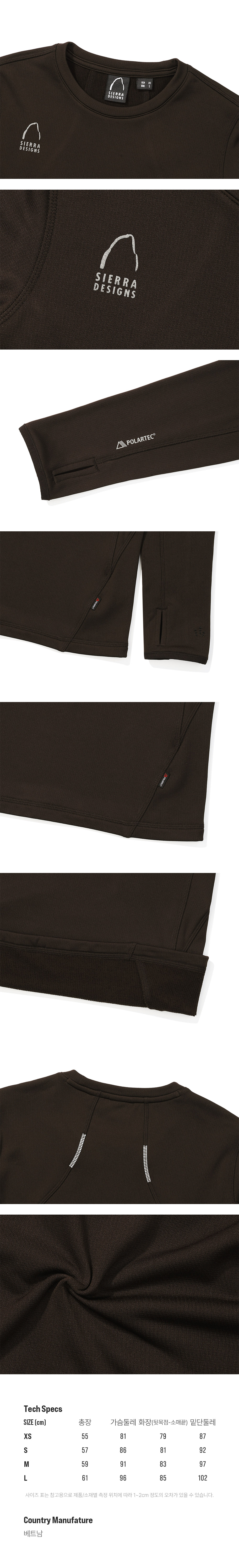 시에라디자인 W 맨던홀 폴라텍 파워그리드 슬림핏 롱 슬리브 다크 브라운