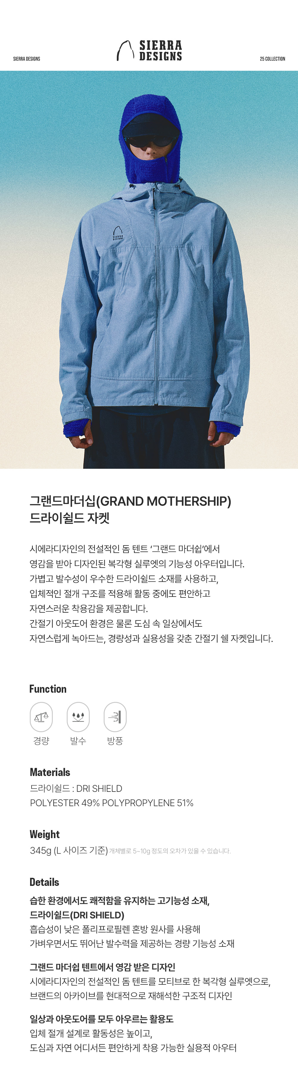 시에라디자인 그랜드마더십 드라이쉴드 자켓 라이트 그레이