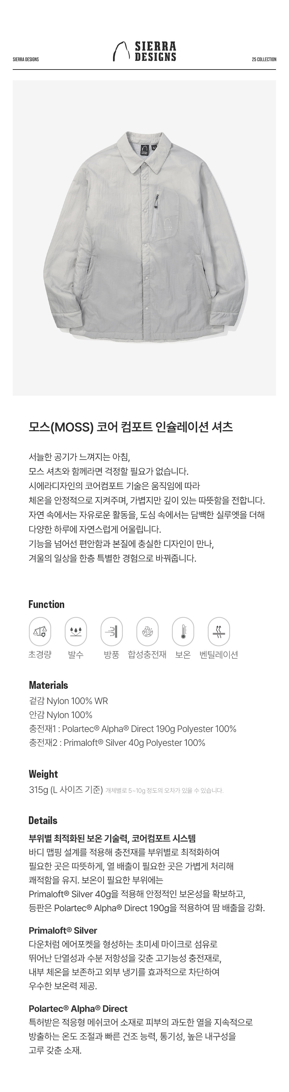 시에라디자인 모스 코어 컴포트 인슐레이션 셔츠 라이트 그레이