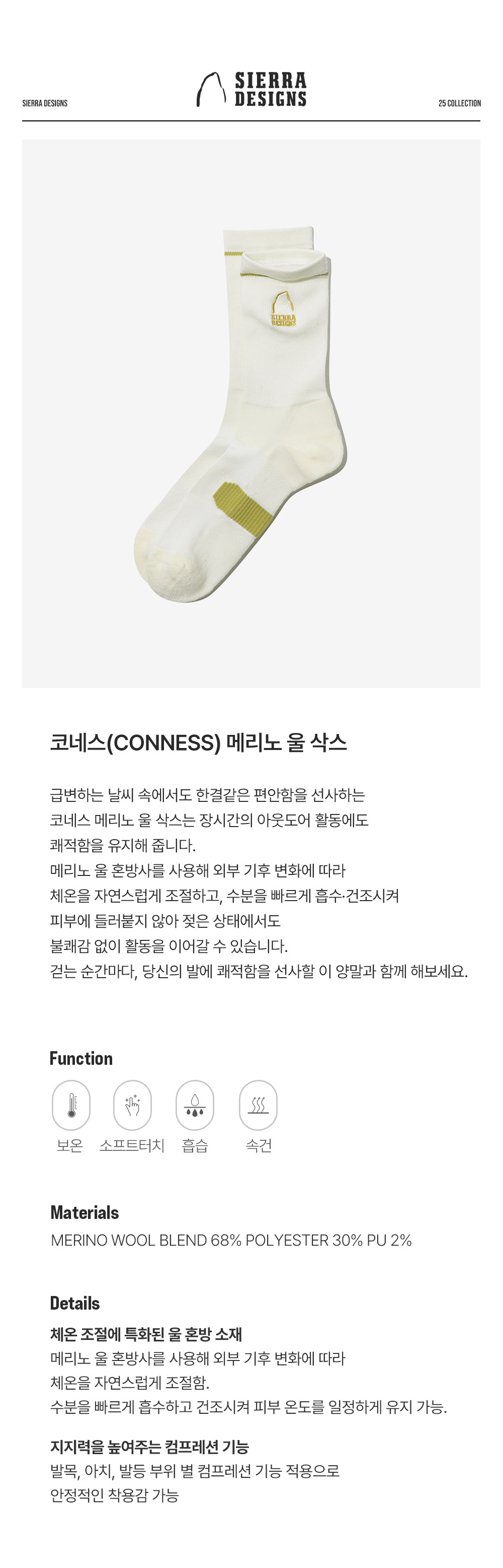 시에라디자인 코네스 메리노 울 삭스 화이트