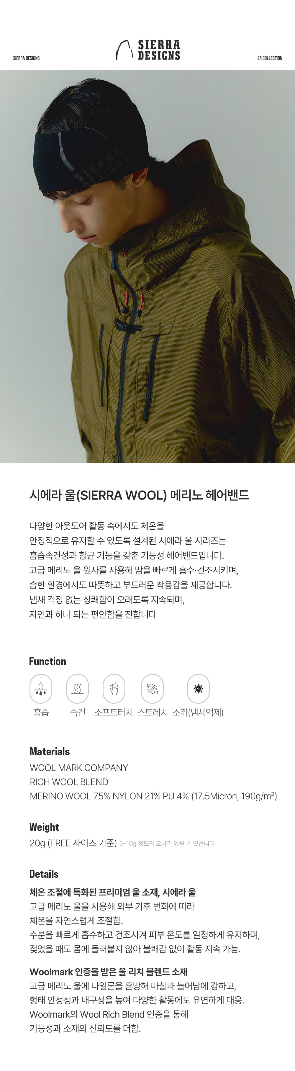 [6% 적립] 시에라디자인 시에라 울 메리노 헤어밴드 블랙