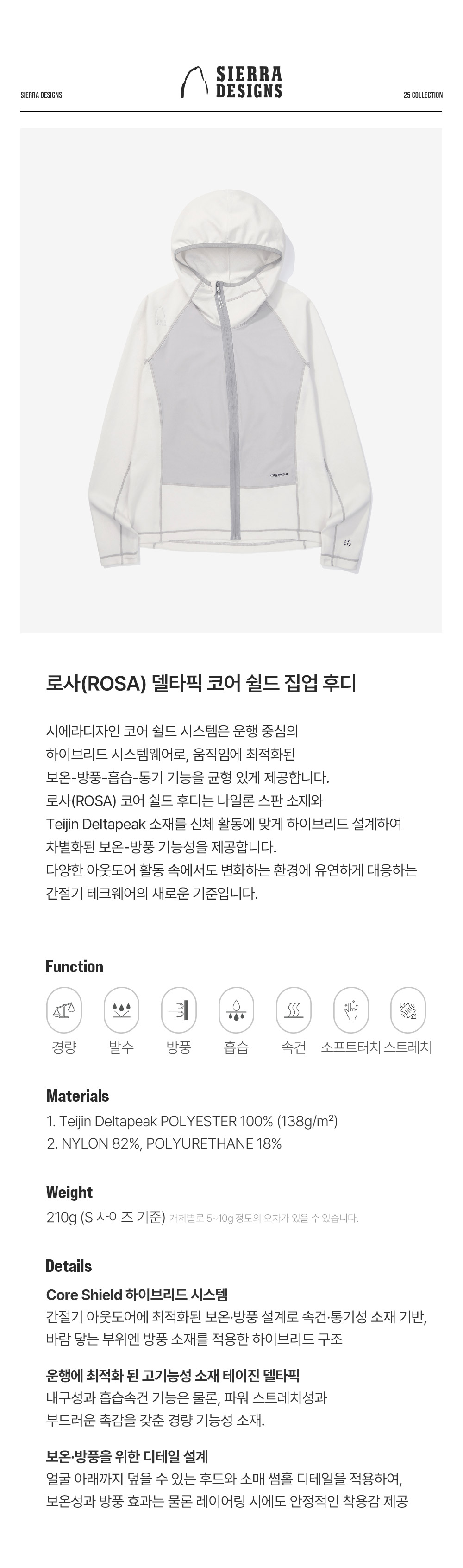 시에라디자인 W 로사 델타픽 코어 쉴드 집업 후디 아이보리