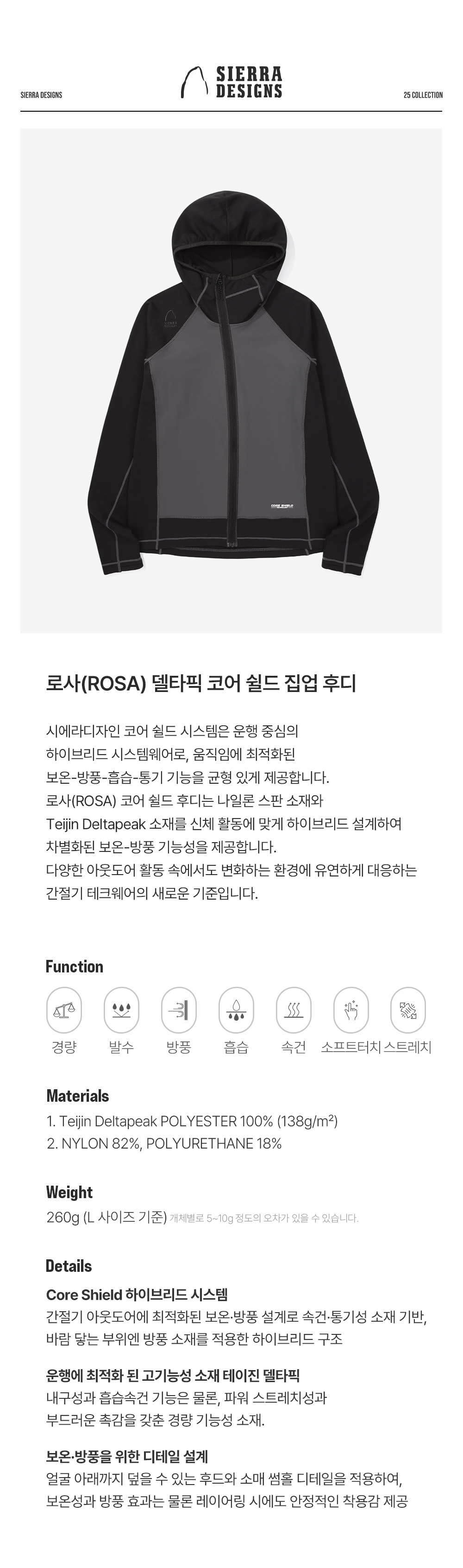 시에라디자인 로사 델타픽 코어 쉴드 집업 후디 블랙