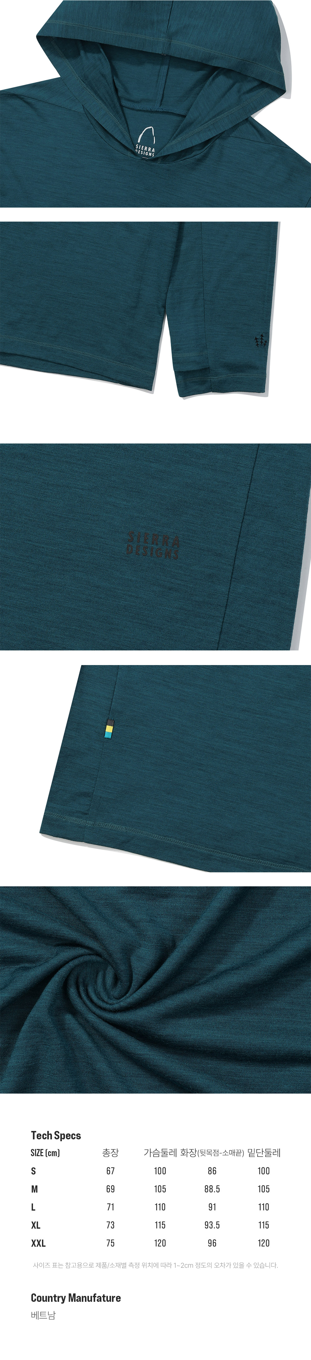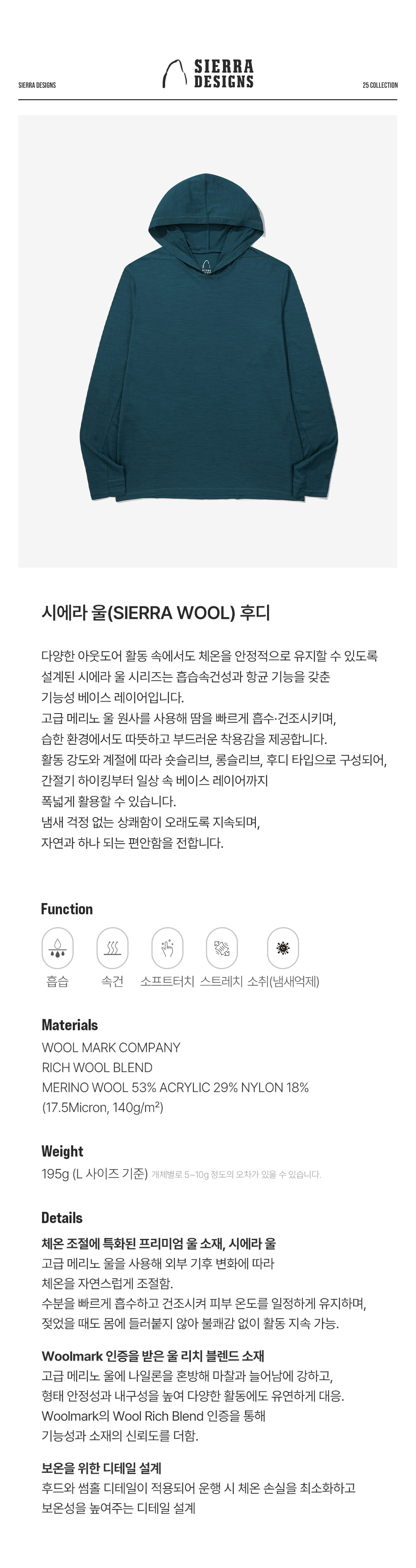 시에라디자인 시에라 울 후디 블루 그린