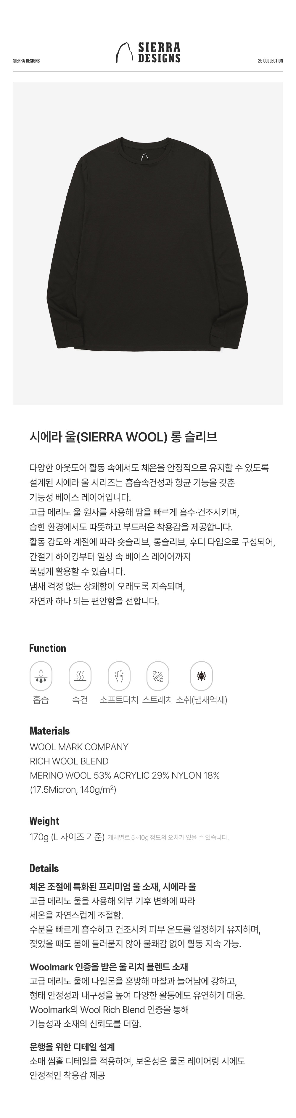 시에라디자인 시에라 울 롱 슬리브 블랙
