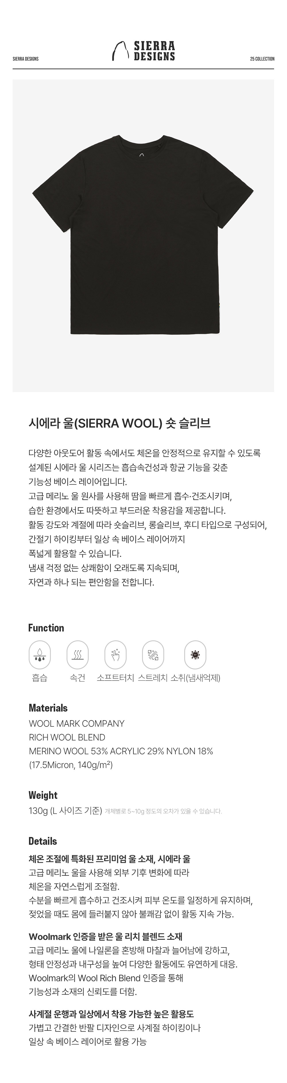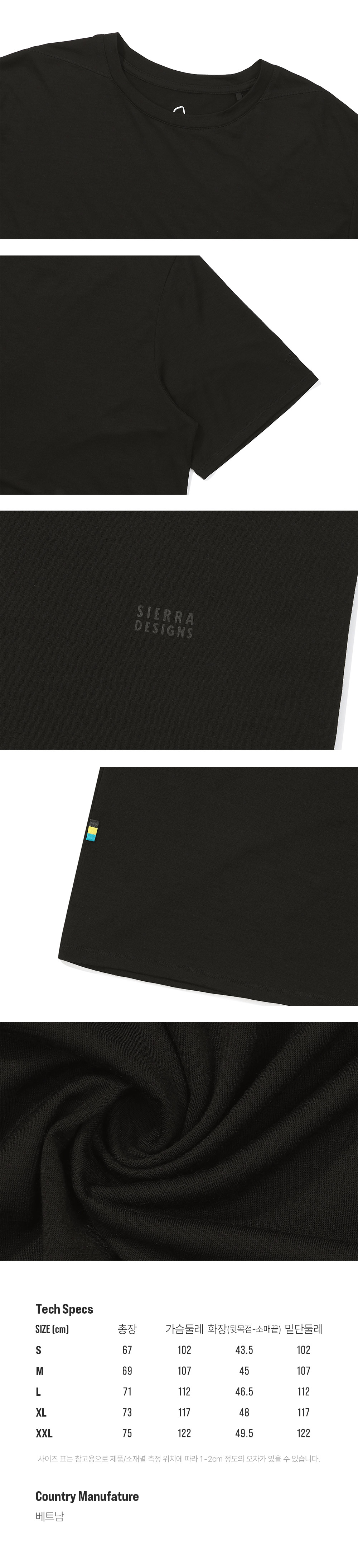 시에라디자인 시에라 울 숏 슬리브 블랙