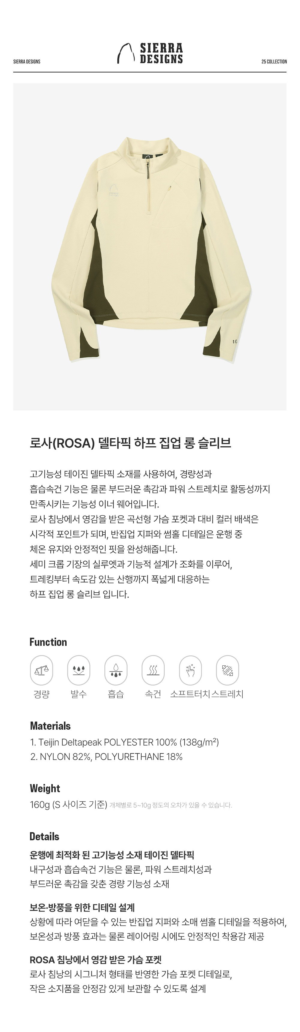 시에라디자인 W 로사 델타픽 하프 집업 롱 슬리브 레몬 옐로우