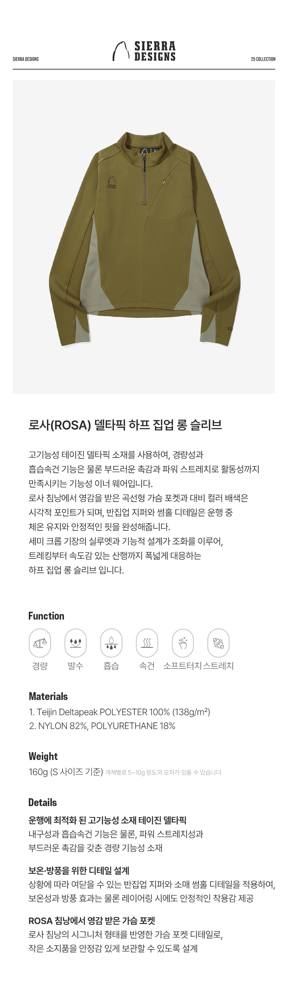 시에라디자인 W 로사 델타픽 하프 집업 롱 슬리브 카키