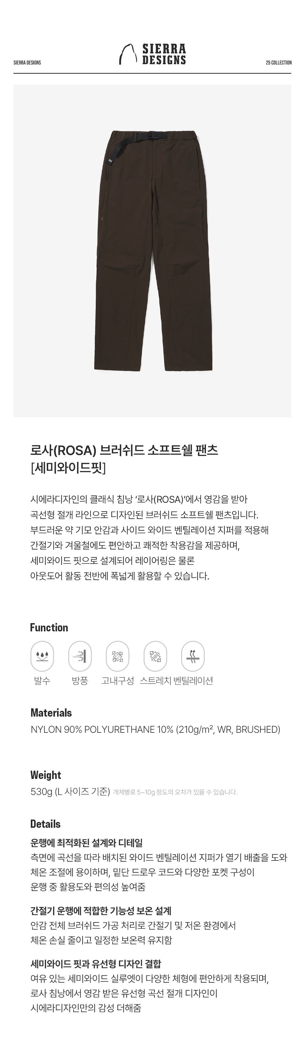 시에라디자인 로사 브러쉬드 소프트쉘 팬츠 세미와이드핏 브라운