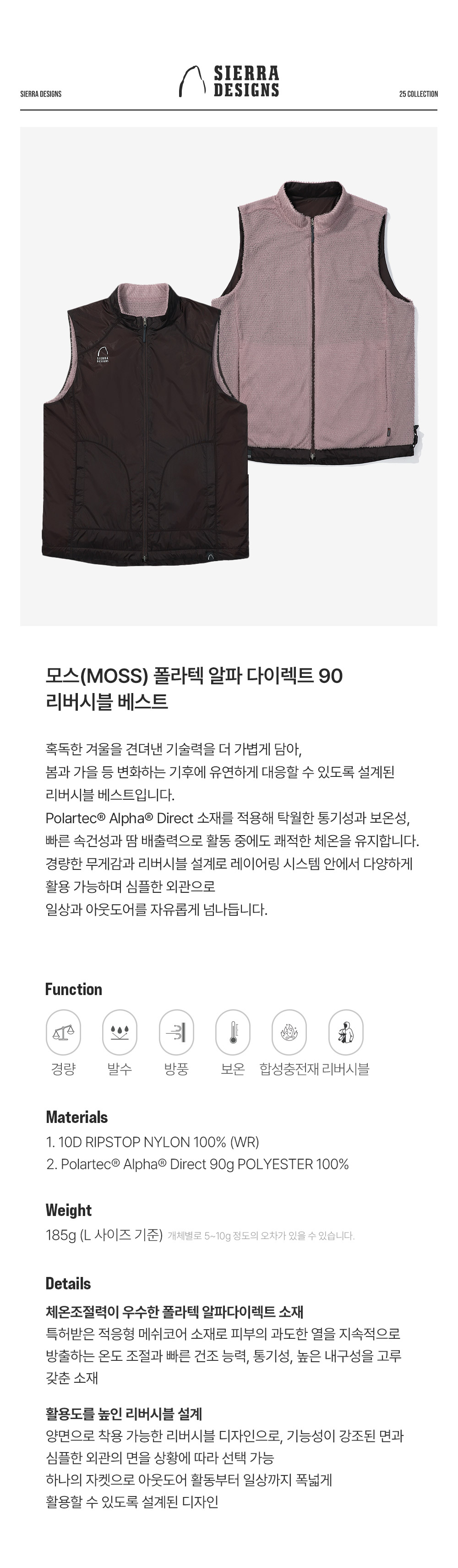 시에라디자인 모스 폴라텍 알파 다이렉트 90 리버시블 베스트 버건디