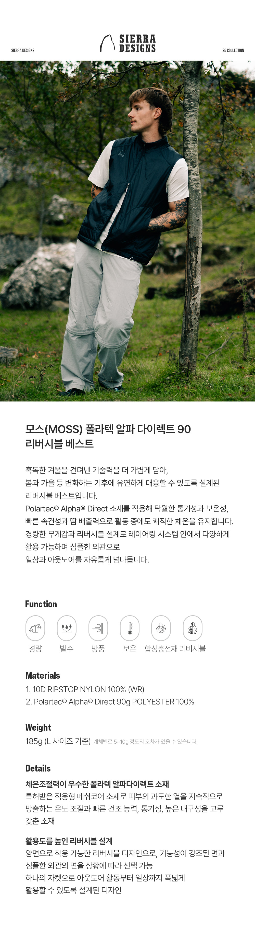 시에라디자인 모스 폴라텍 알파 다이렉트 90 리버시블 베스트 차콜