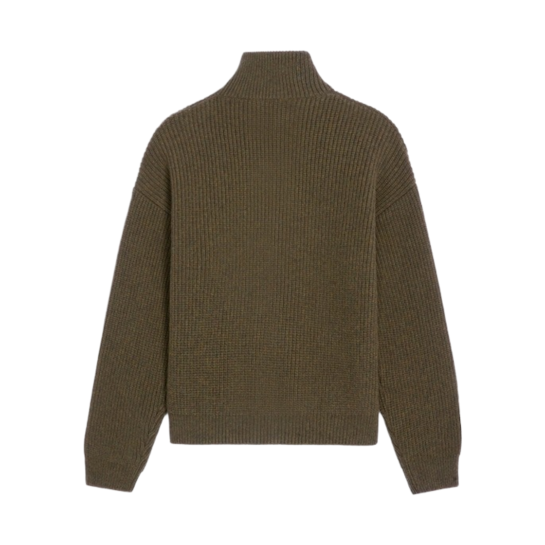 Celine RIbbed Wool Triomphe Trucker Sweater Khaki Brown
